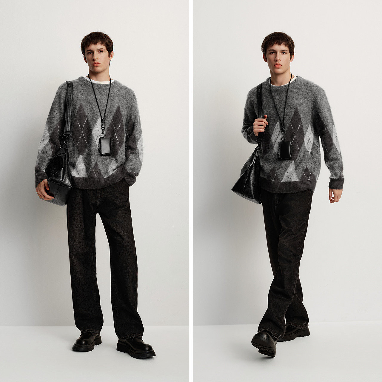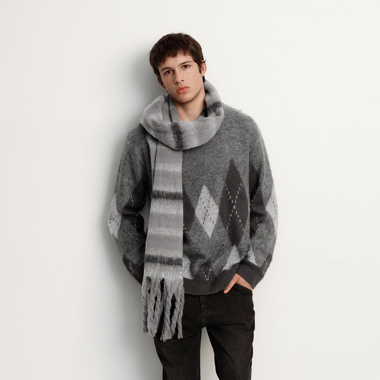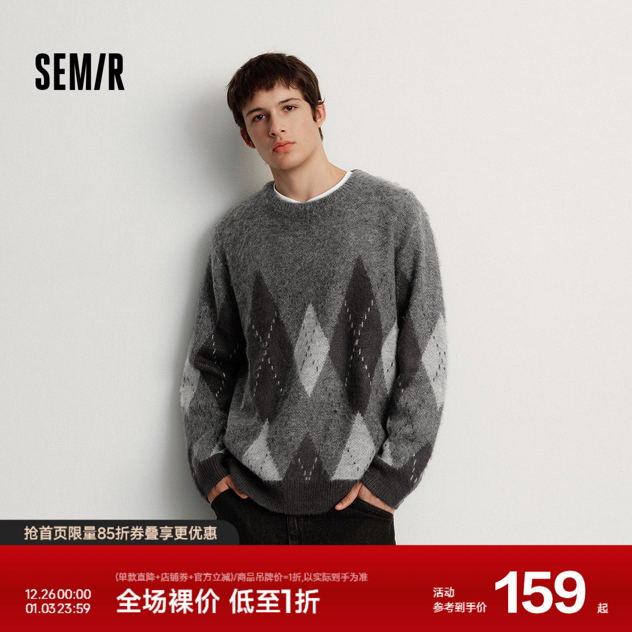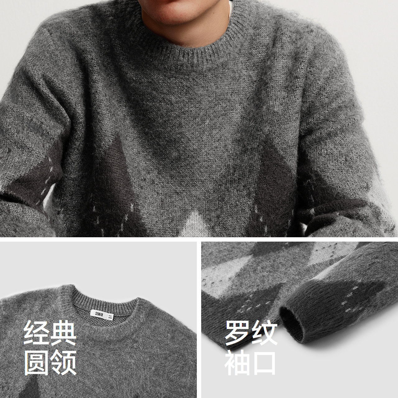 森马毛衫男冬季仿马海毛格纹提花针织衫2025新款复古学院风情侣装