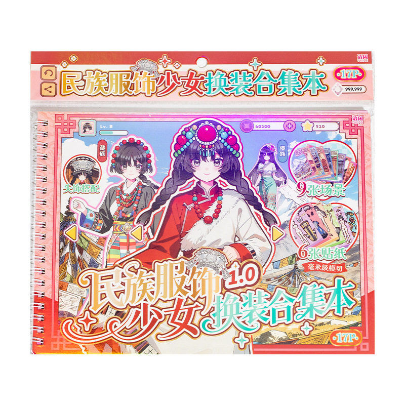 语闲民族服饰少女换装贴纸本女孩儿童手账贴画diy造景场景拼贴本