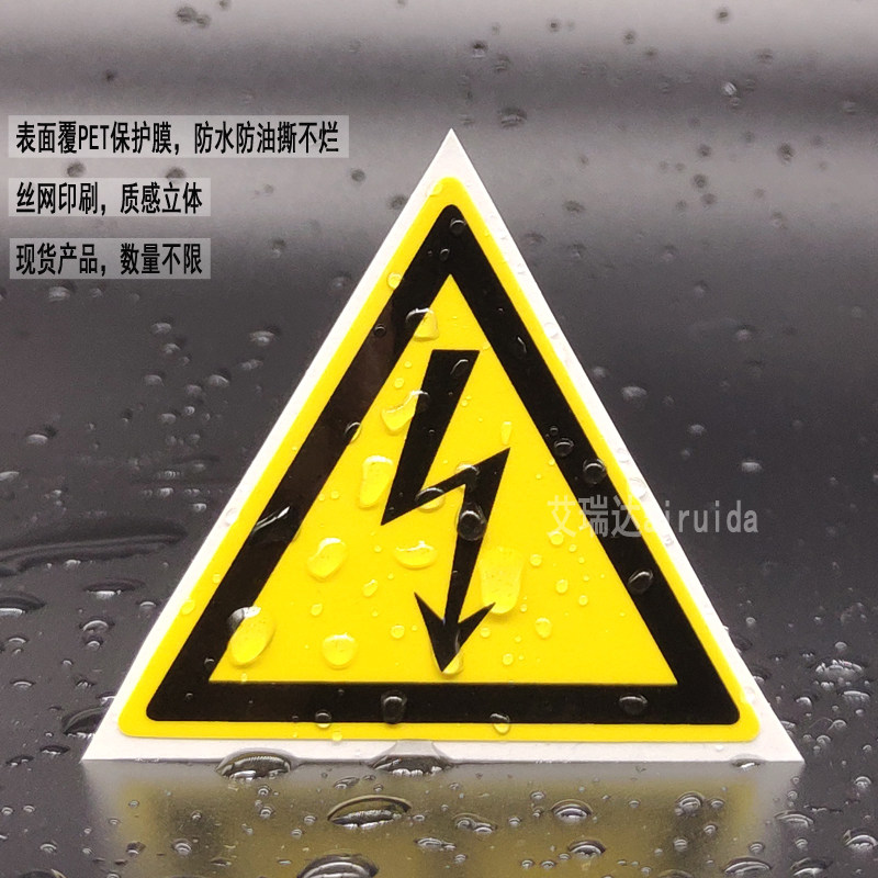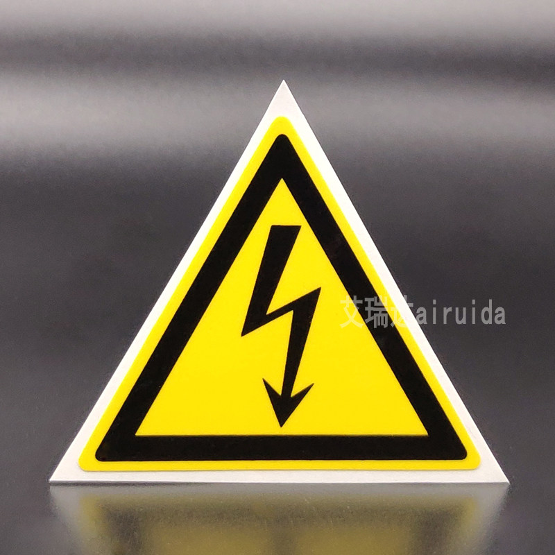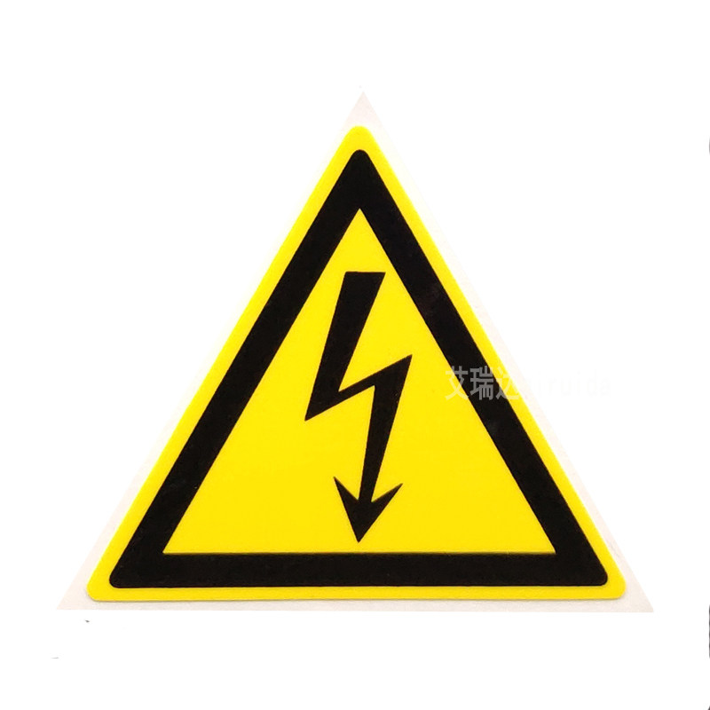 推荐艾瑞达当心触电标识设备安全标签不干胶闪电标志贴纸ELE-K007