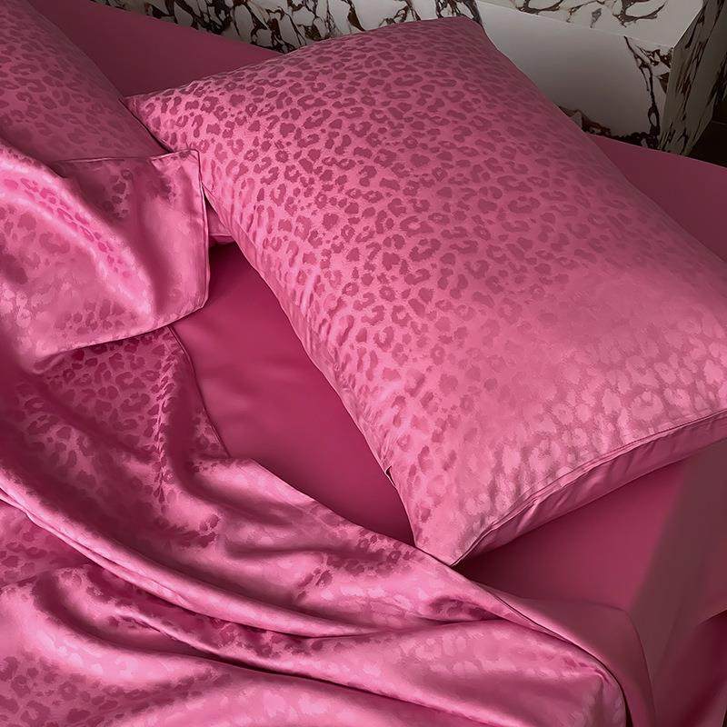 卡戴珊玫红床品夏季60s豹纹超A天丝四件套高级轻奢裸睡冰丝凉感
