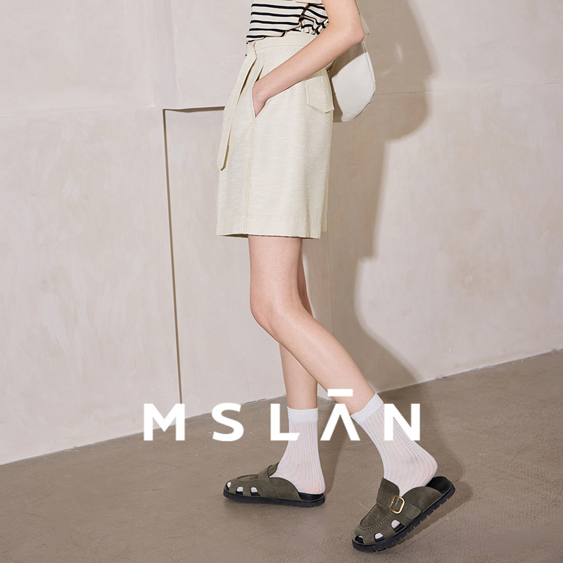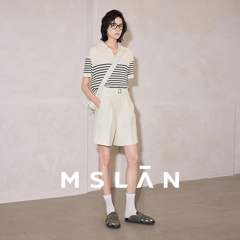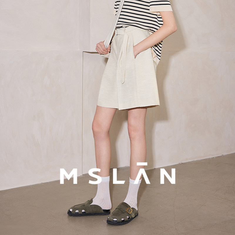 时髦五分裤/MSLAN夏季通勤薄款不对称高腰西装裤短裤女MGBK218