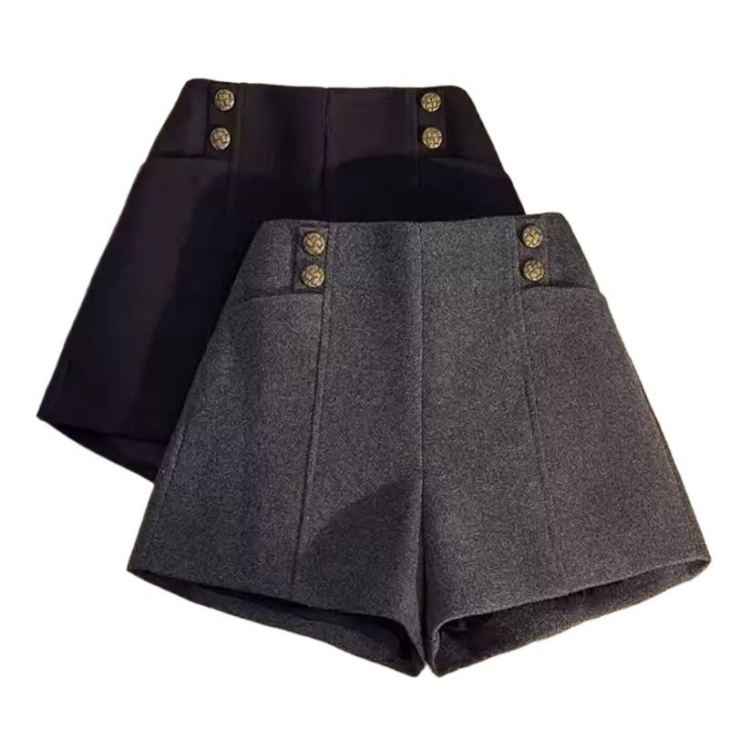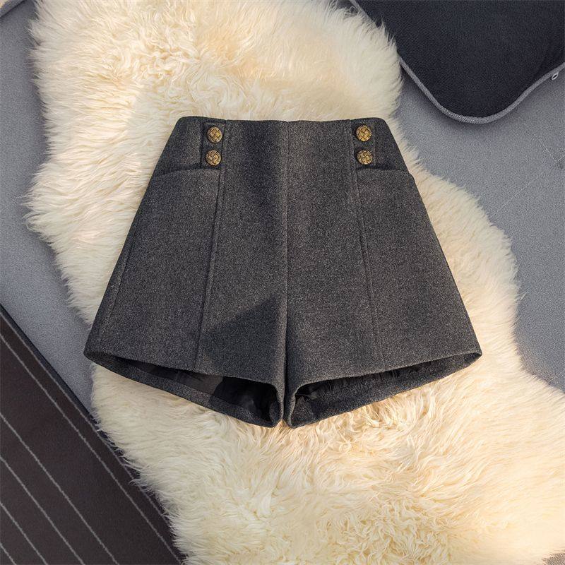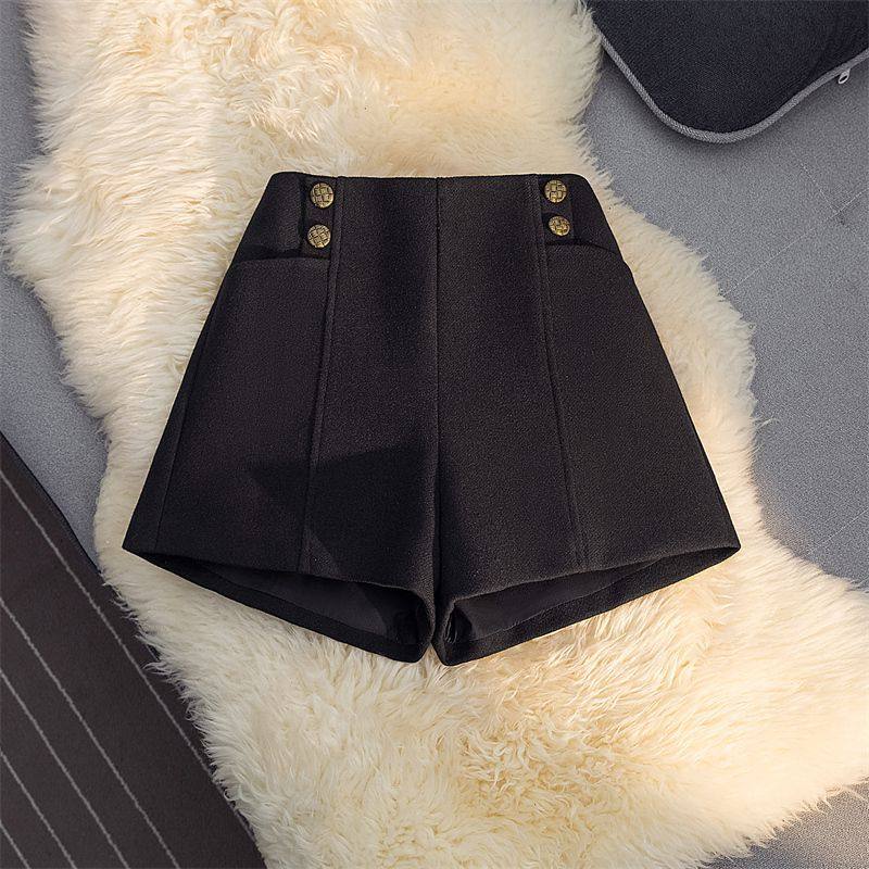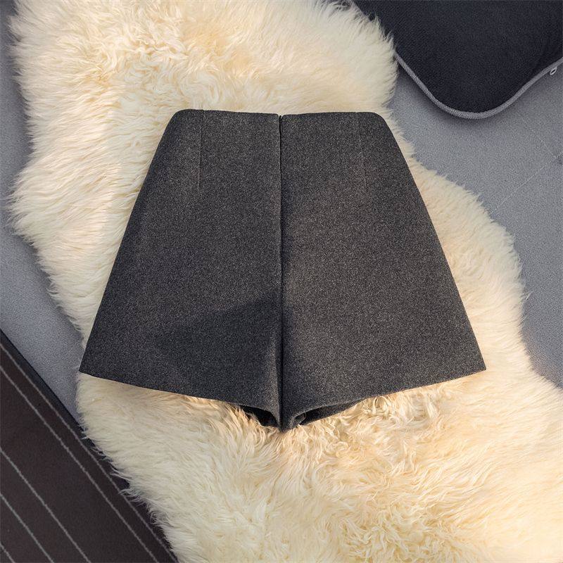 设计感小众黑色毛呢短裤女2026春秋新款大码高腰显瘦a字外穿靴裤