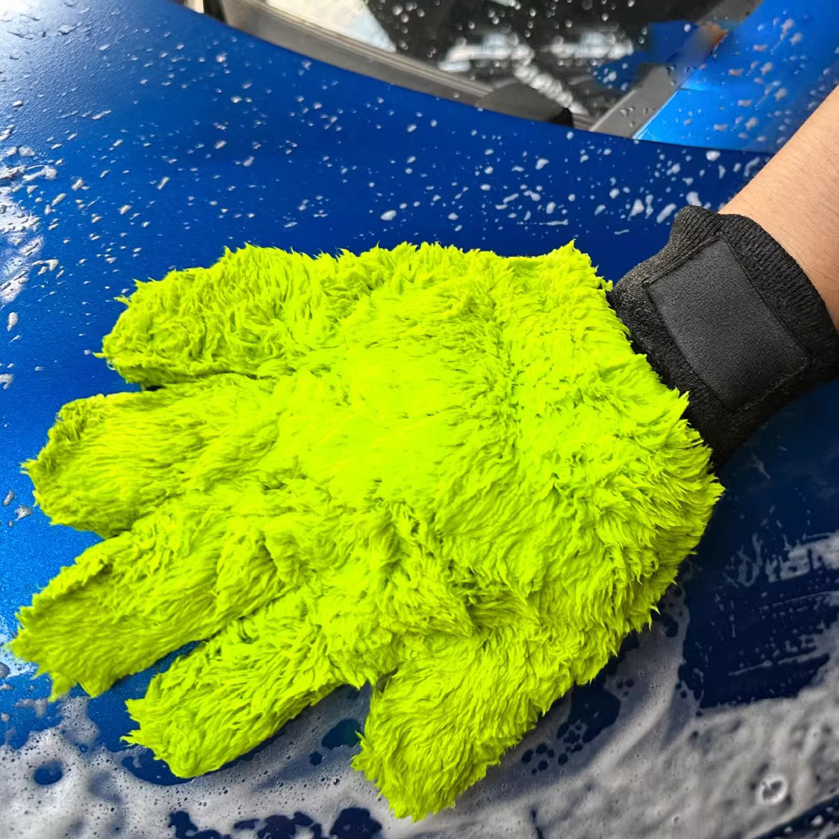 加厚双面五指毛绒洗车手套毛绒熊掌擦车打泡沫刷车清洁不伤漆面