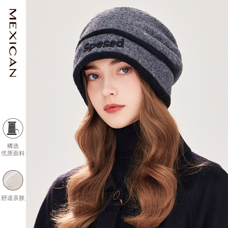 稻草人新款洋气堆堆帽女士秋冬季保暖护耳女帽子骑车防风寒毛线帽