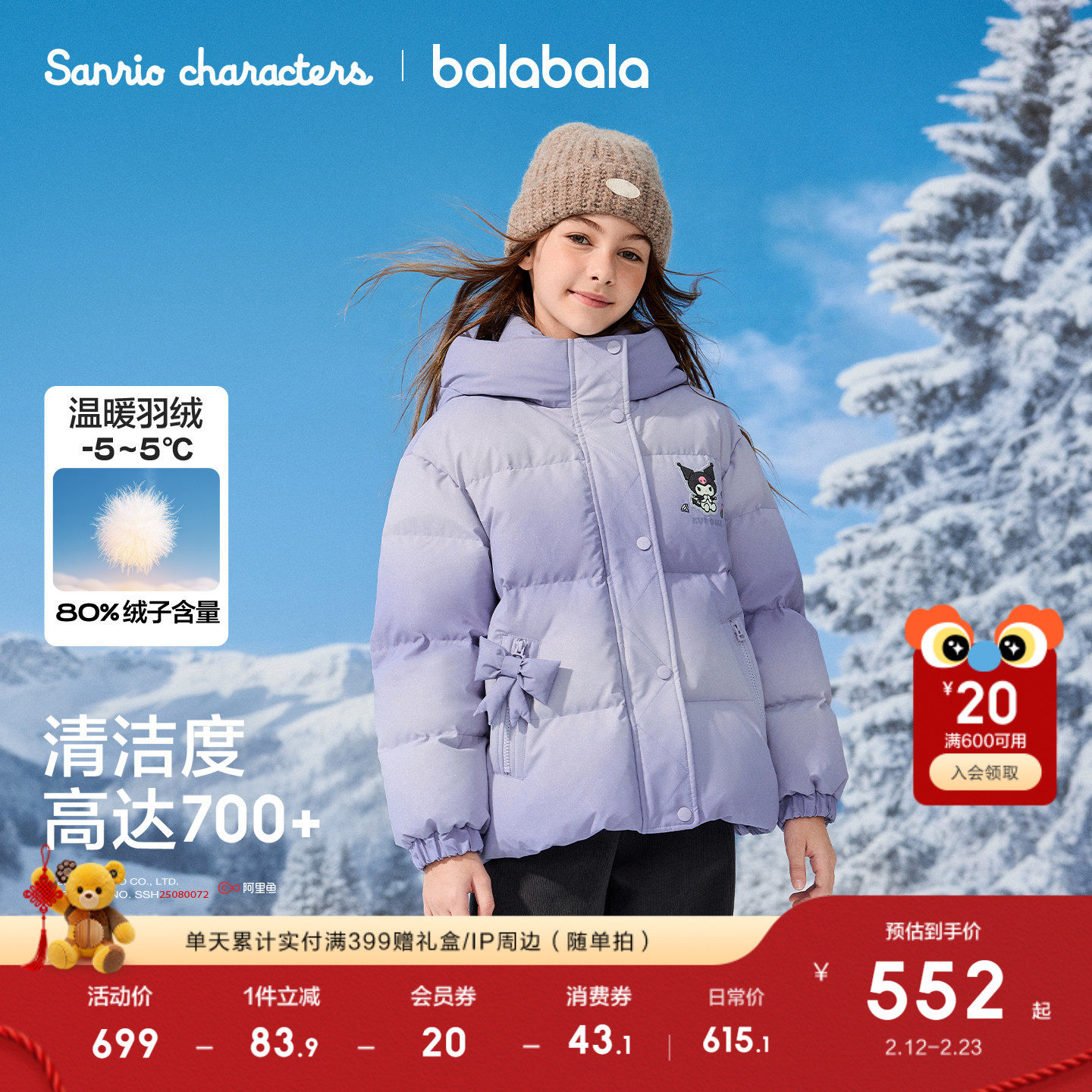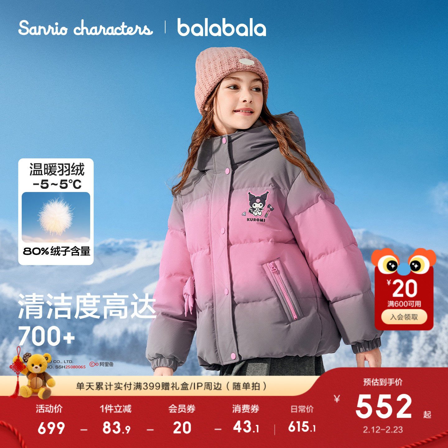 温暖茧型羽绒服,三丽鸥联名