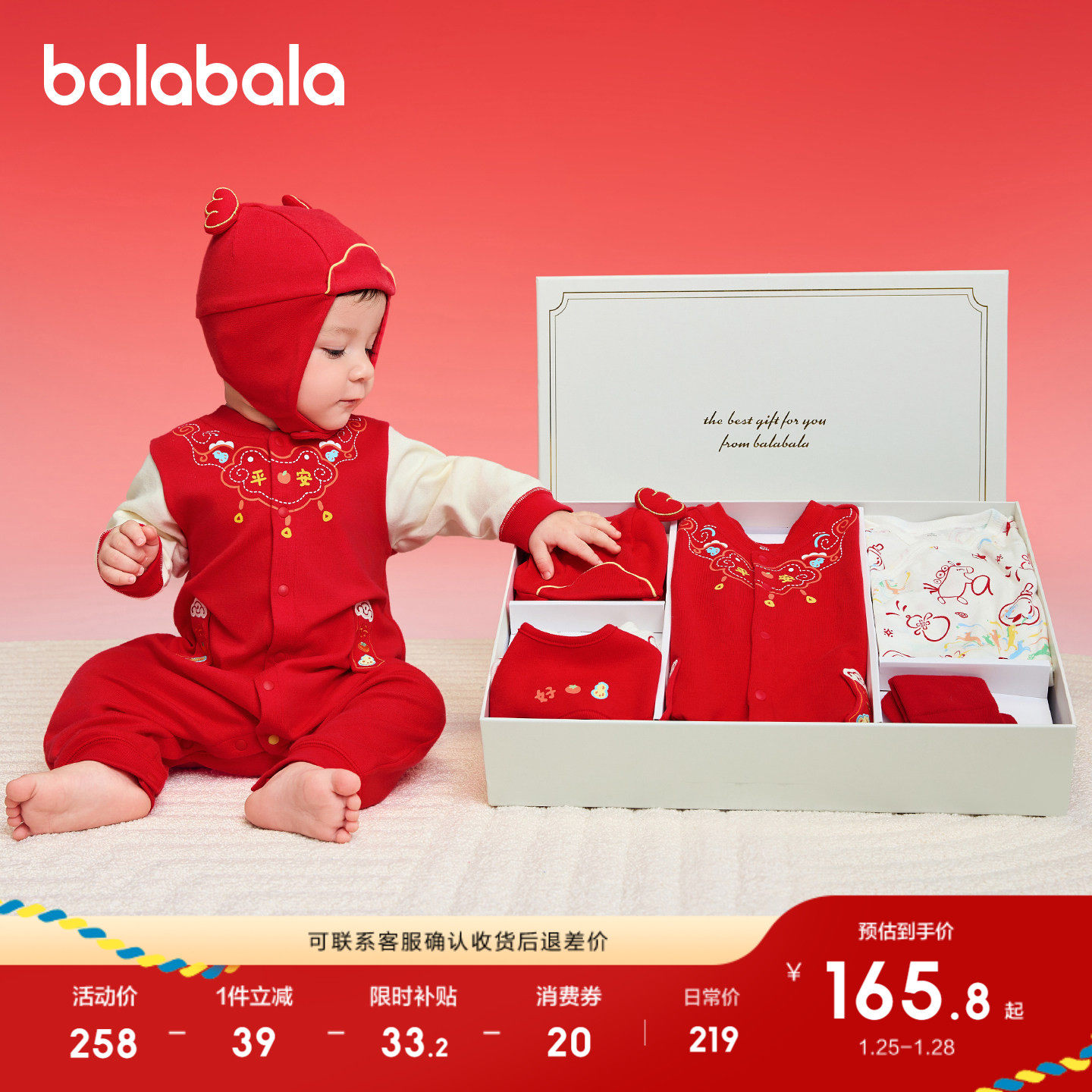 巴拉巴拉新生儿礼盒宝宝满月礼初生礼物用品婴儿礼盒见红色拜年服