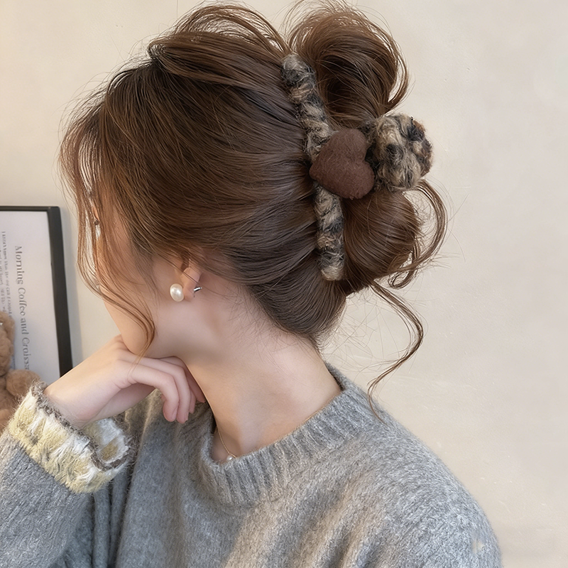 韩系ins毛绒爱心抓夹女高级感大号毛毛发夹后脑勺盘发鲨鱼夹发饰