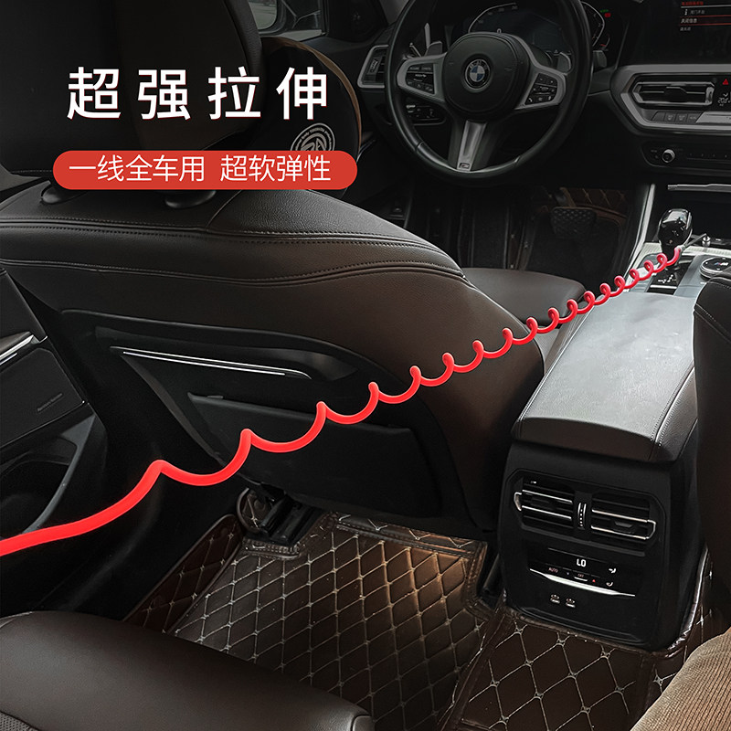 车载硅胶弹簧数据线适用typec华为苹果15一拖二carplay投屏充电线