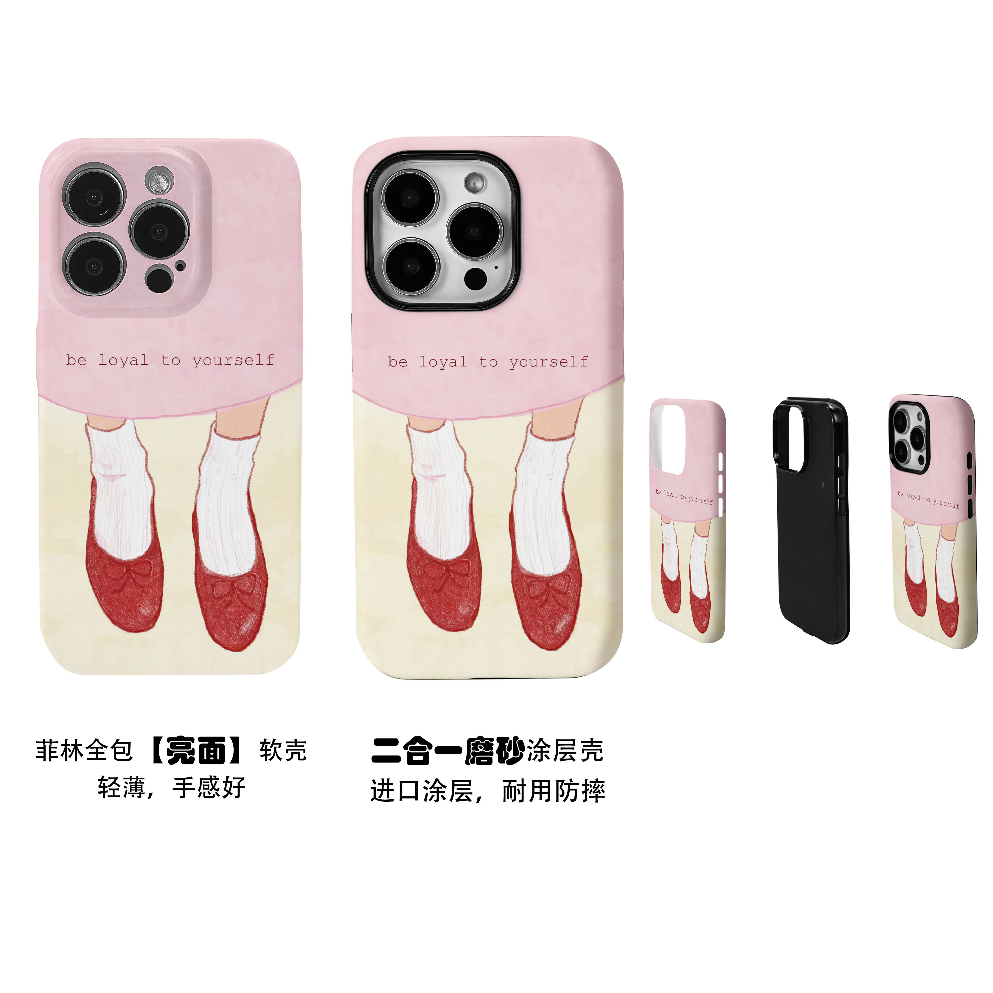 旋转跳舞舞鞋少女粉色菲林二合一手机壳适用苹果17nova14华为p70mate60小米15opporen14ovivo荣耀300iPhone16