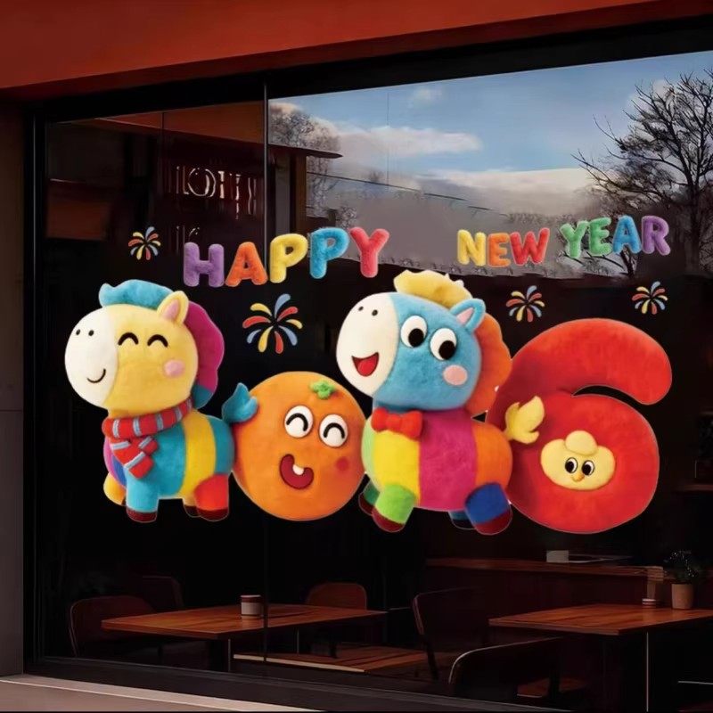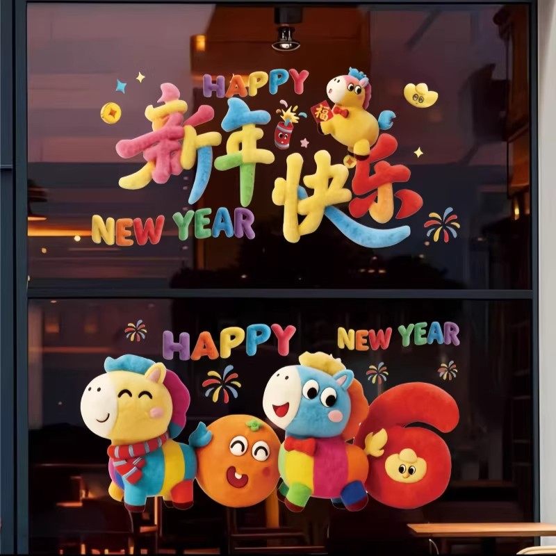 新款马年窗贴5D小马静电贴橱窗玻璃装饰品过年布置新年快乐贴纸