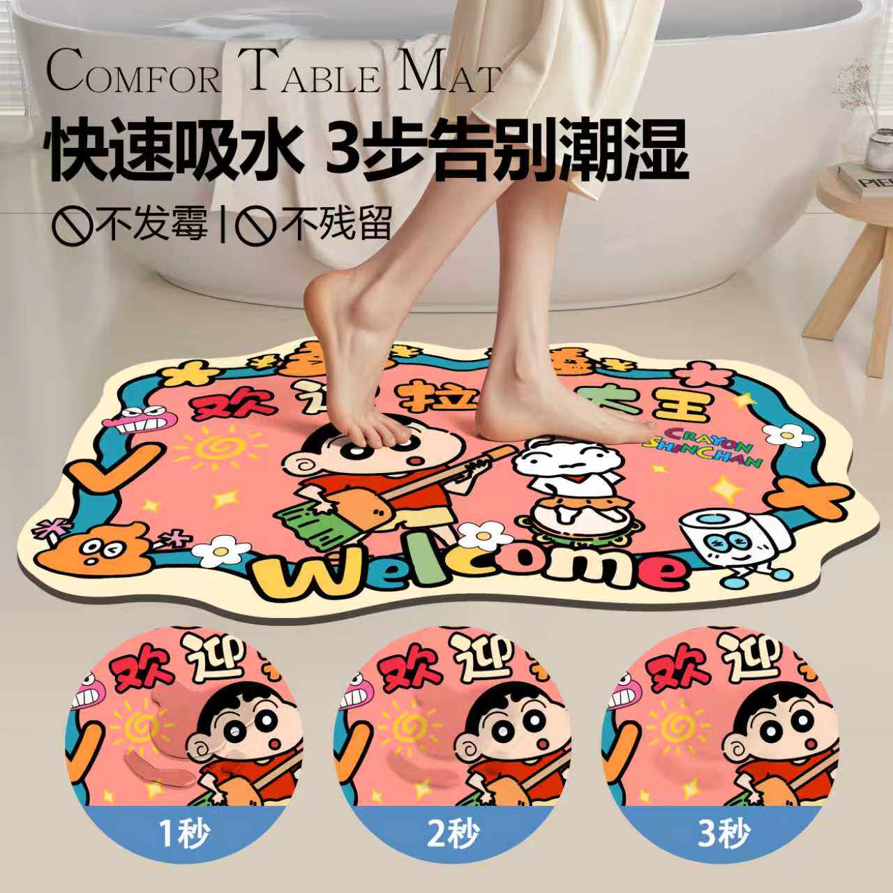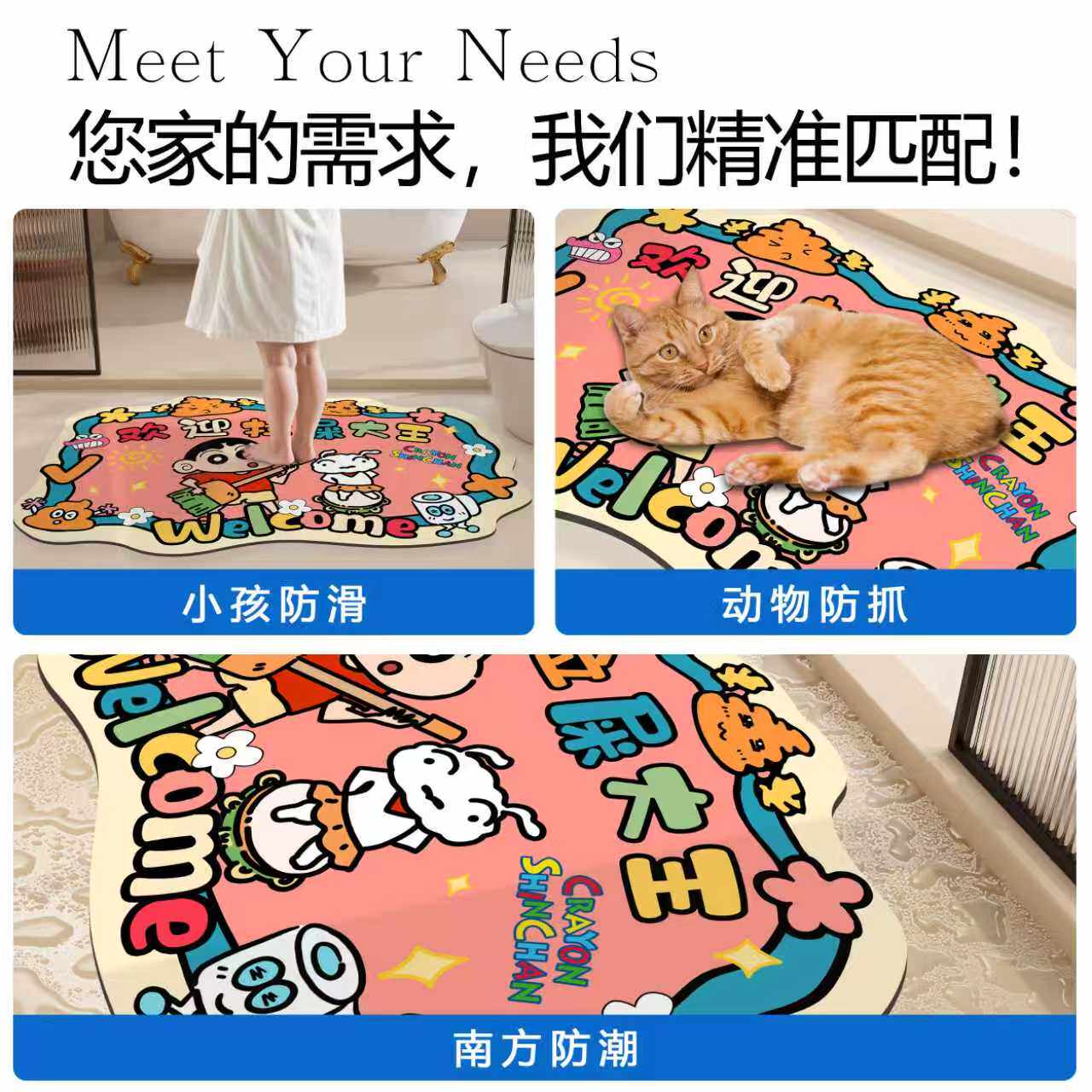 拉屎大王蜡笔小新地垫吸水卫生间硅藻泥浴室防滑地毯厕所脚垫速干