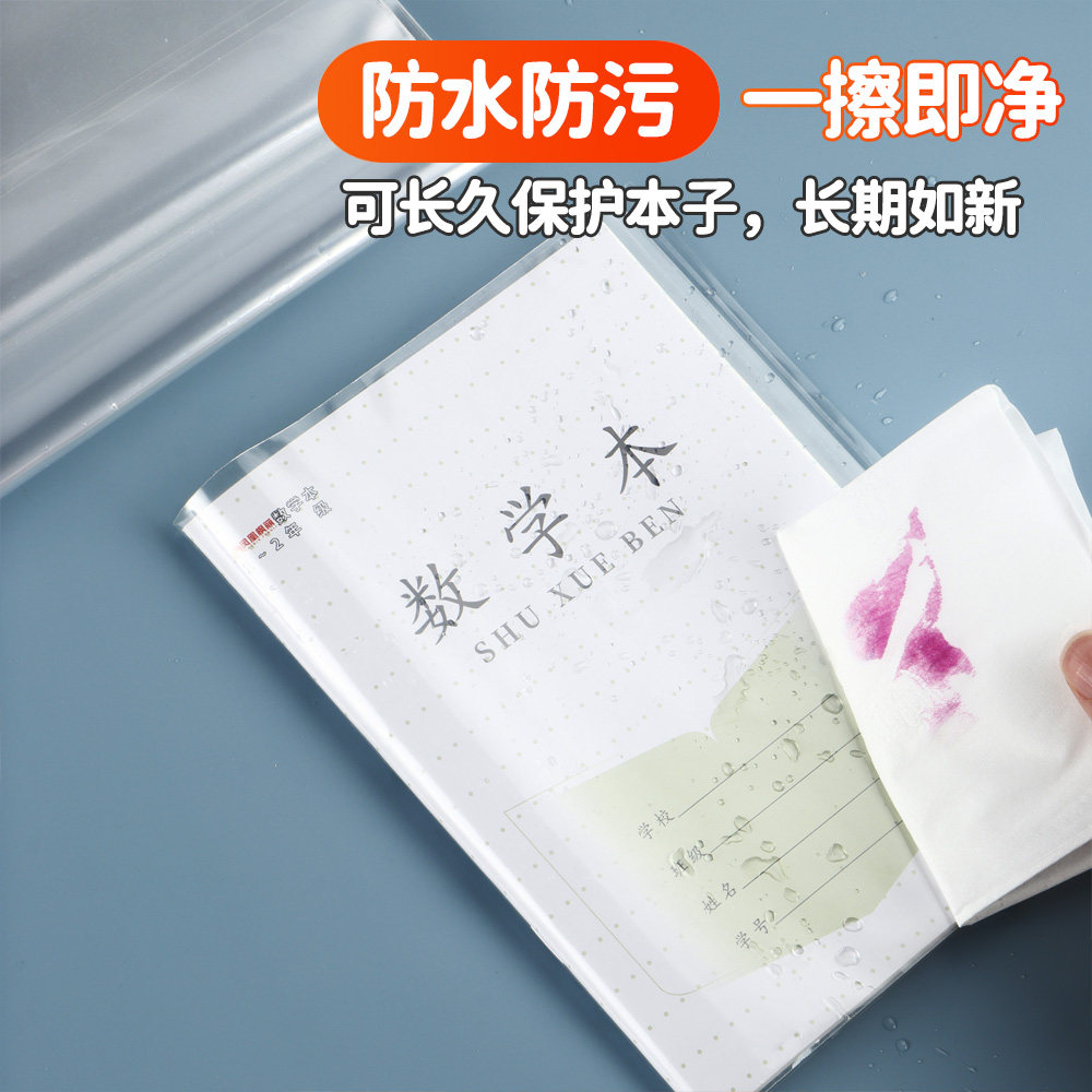 得力分段式书皮纸自粘透明磨砂书皮书套16K防水透明书膜包书皮一二年级小学生套装A4加厚