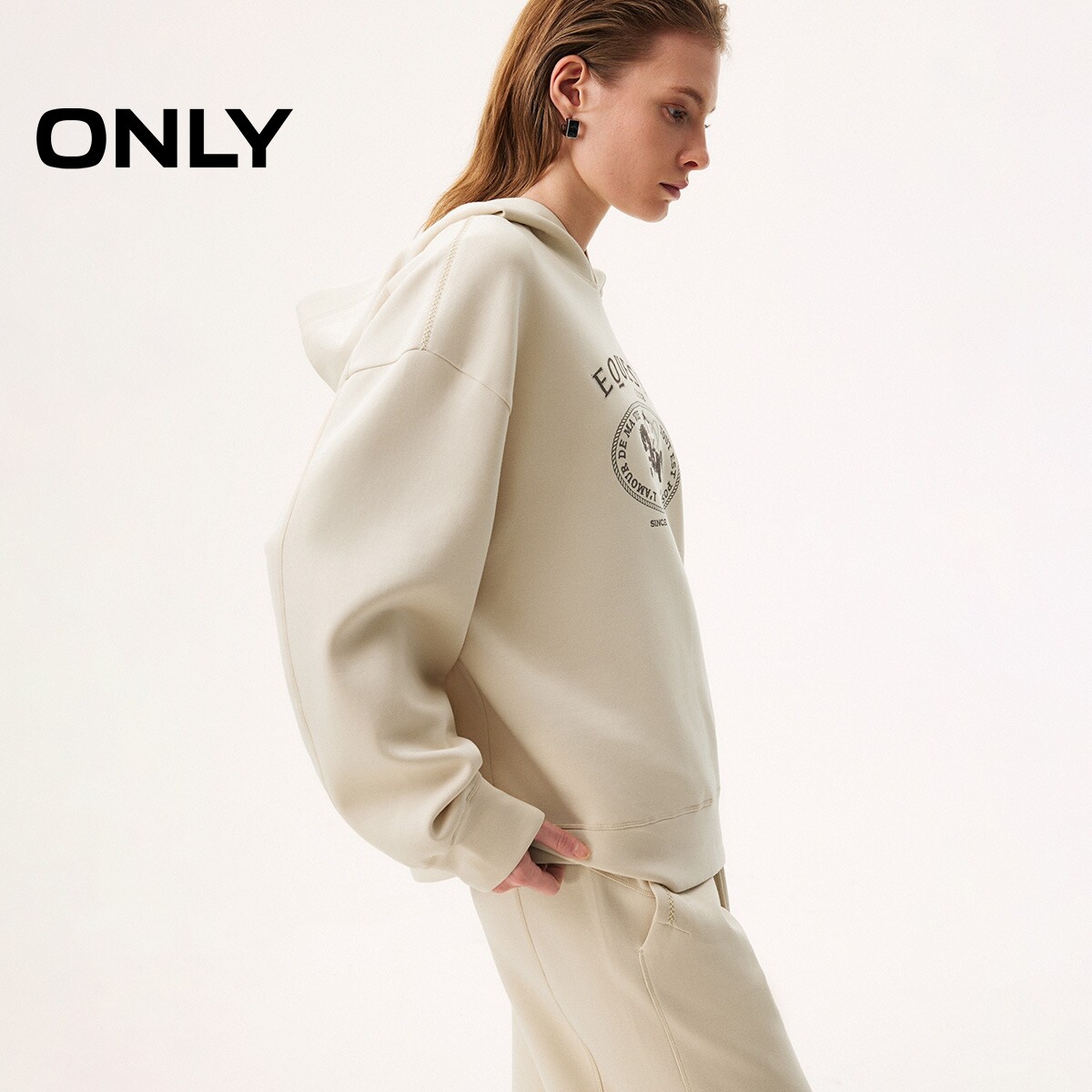ONLY2026春季新款运动风oversize字母印花设计连帽长袖卫衣上衣女
