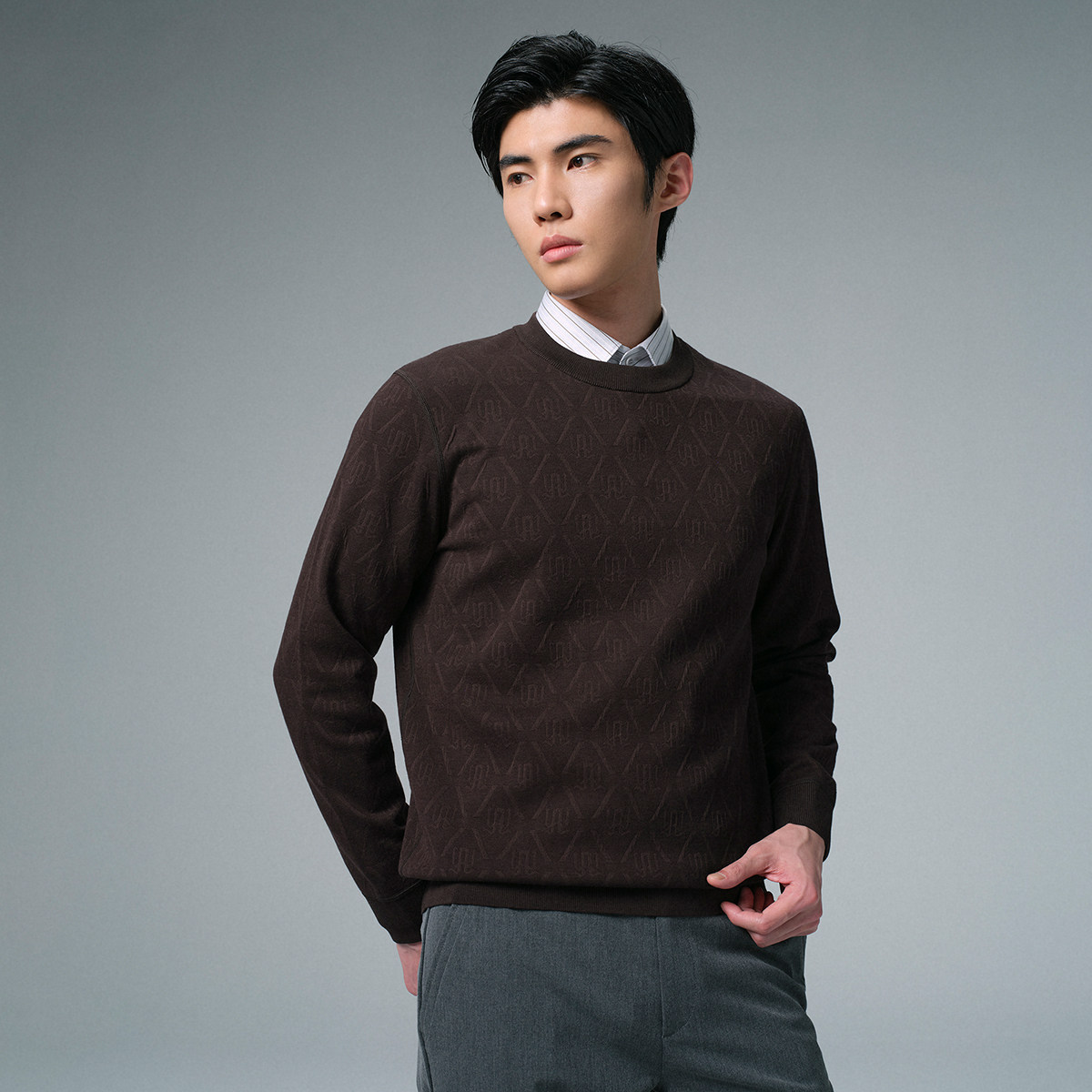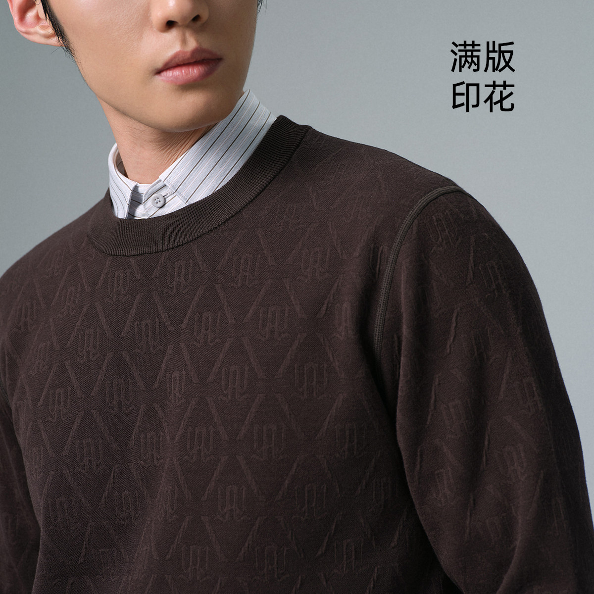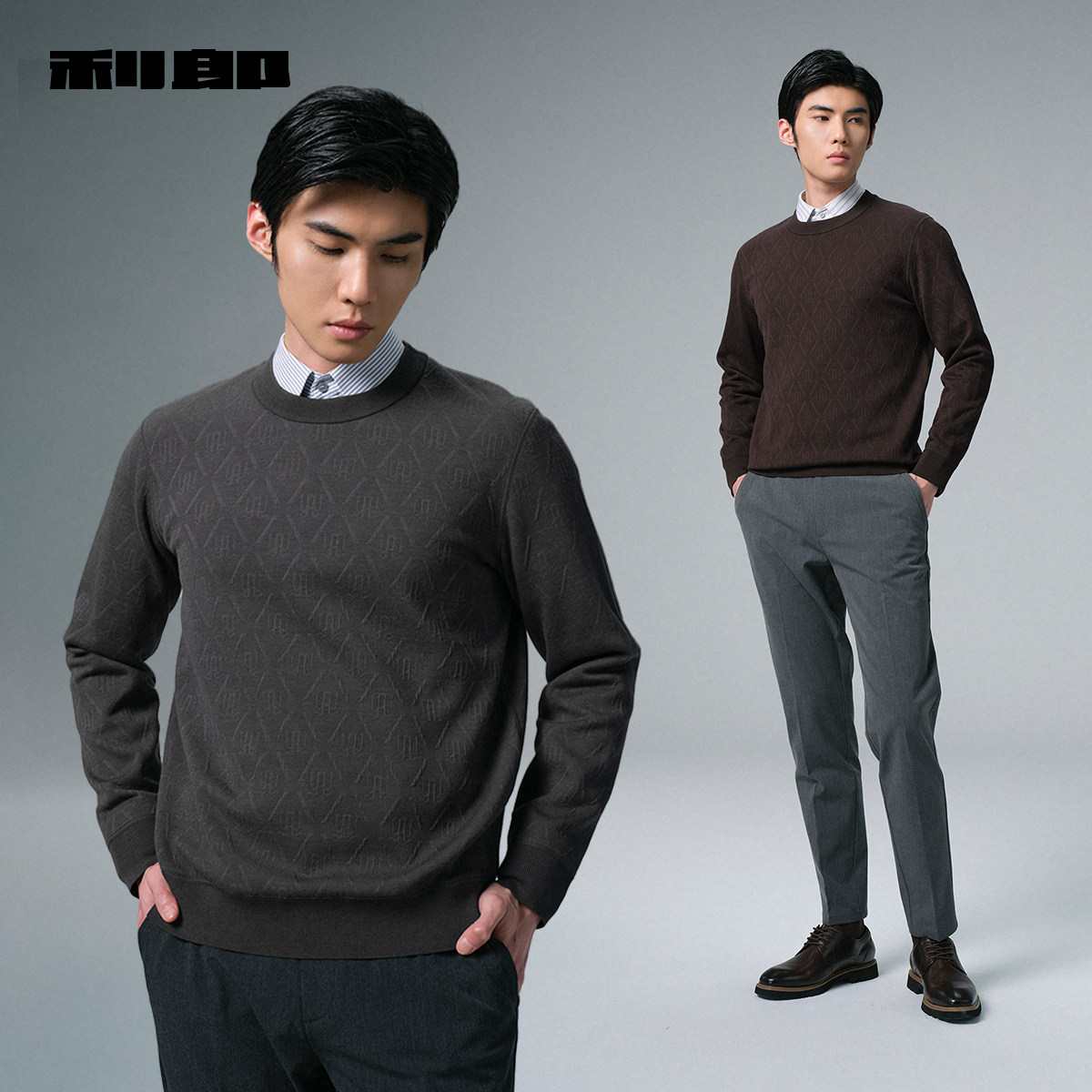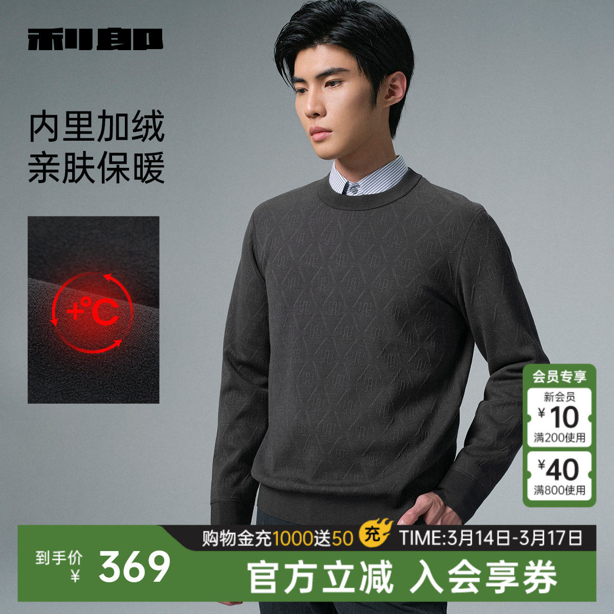 利郎官方 满版提花毛衣男冬季休闲男装内里加绒保暖厚款毛衫