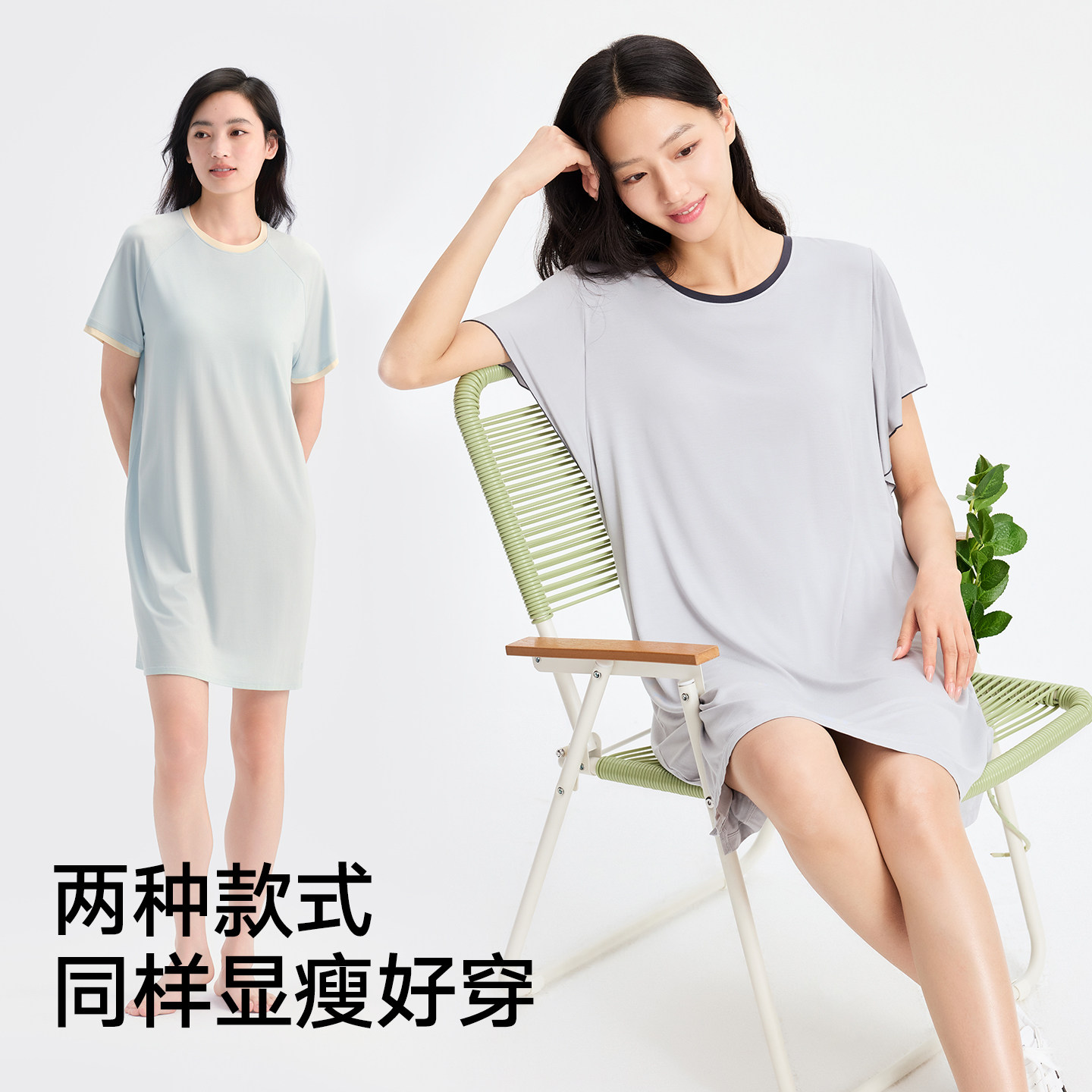 连衣裙女莫代尔短袖睡裙夏薄款打底裙外穿宽松百搭家居服大码长裙