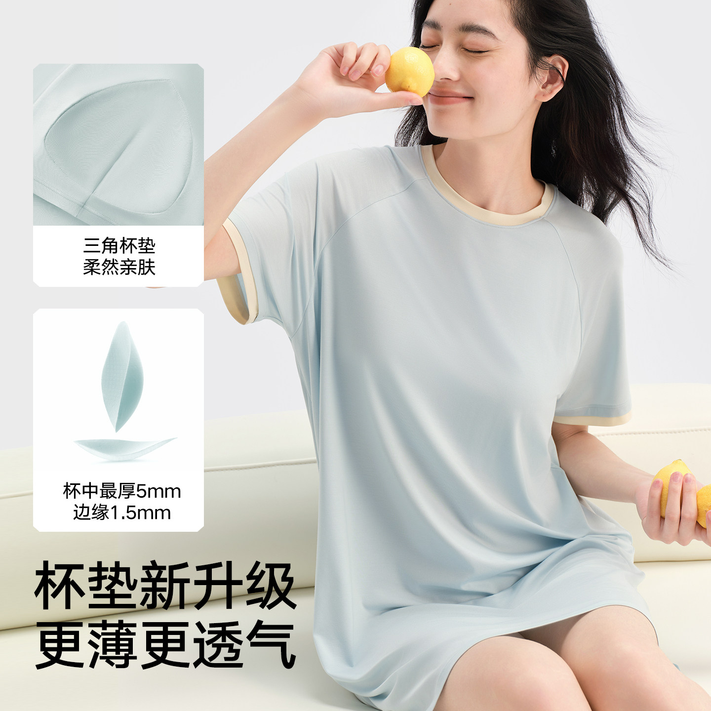 松山棉店二合一小薄荷女士带杯短袖裙莫代尔吊带睡裙女性感带胸垫