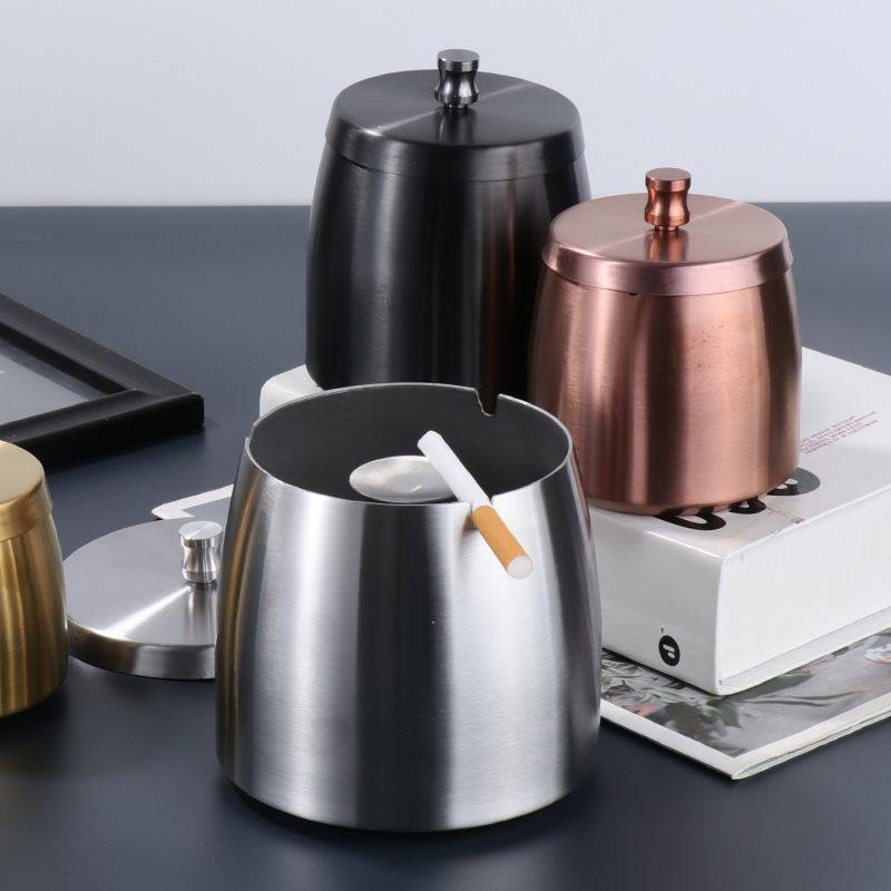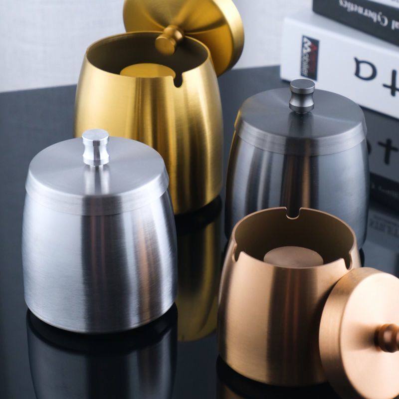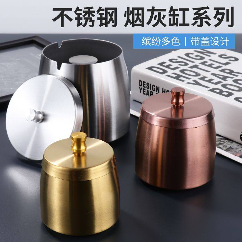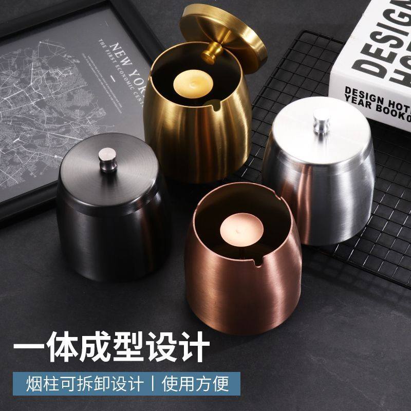 不锈钢大小口一体成型高款防飞灰酒店网吧LOGO设计烟灰缸家用车载