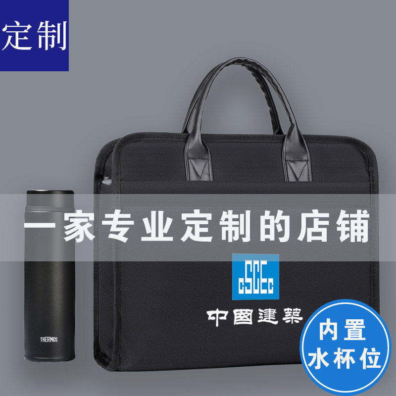 公文包带水杯位定制LOGO男士大容量q文件包印字防水AY4文件袋手提
