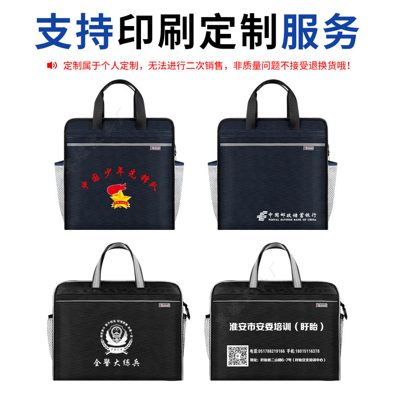 定制文件袋加大手提帆布大容量牛津布拉链商务办公文包会议水杯兜