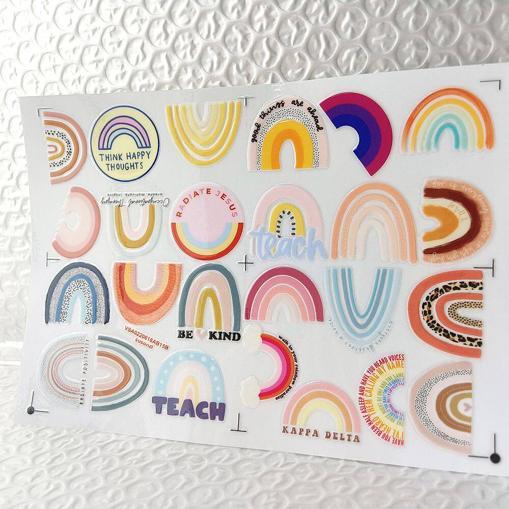 卡通彩虹桥镂空立体防水笔牙刷水杯图装饰贴纸UV转印贴水晶标定制