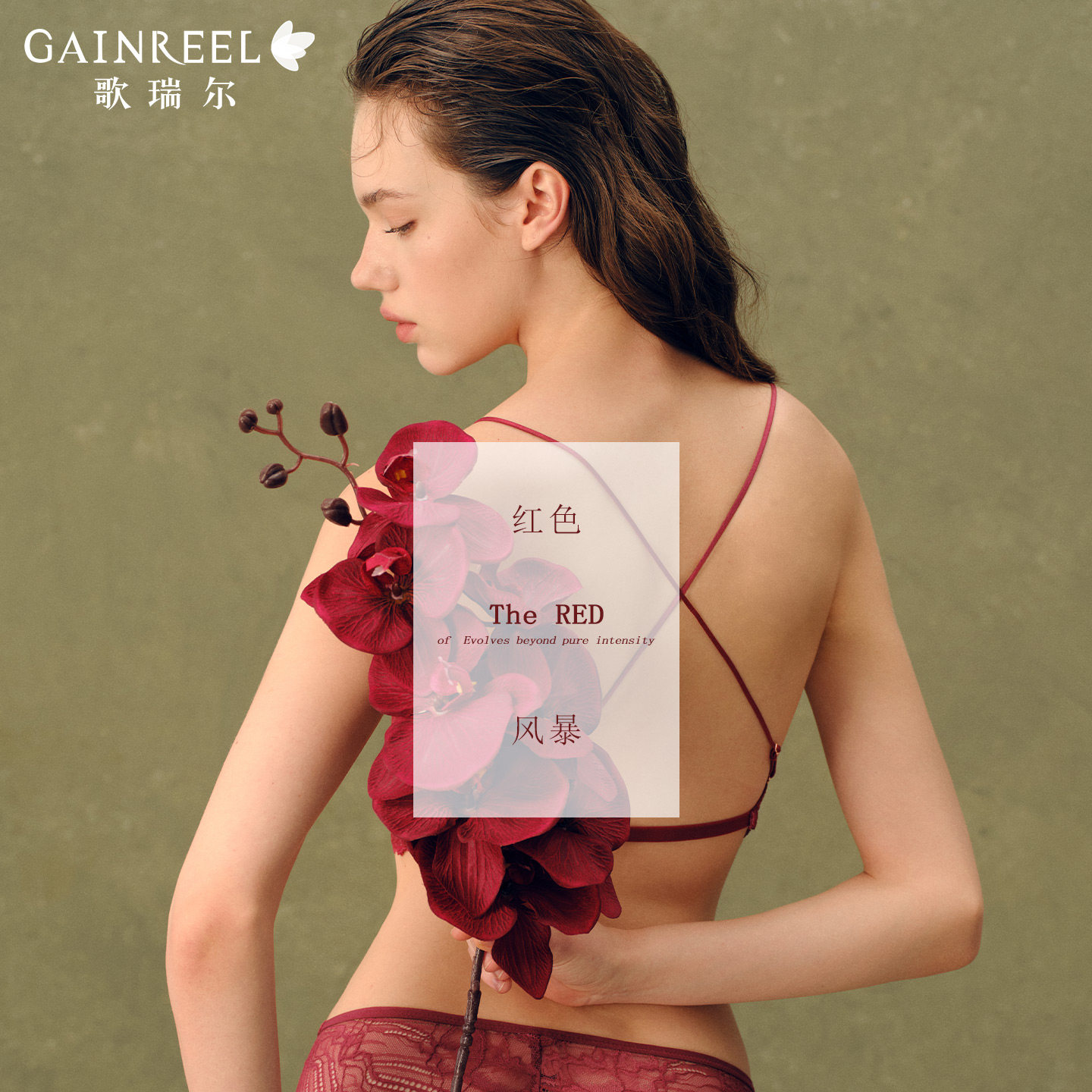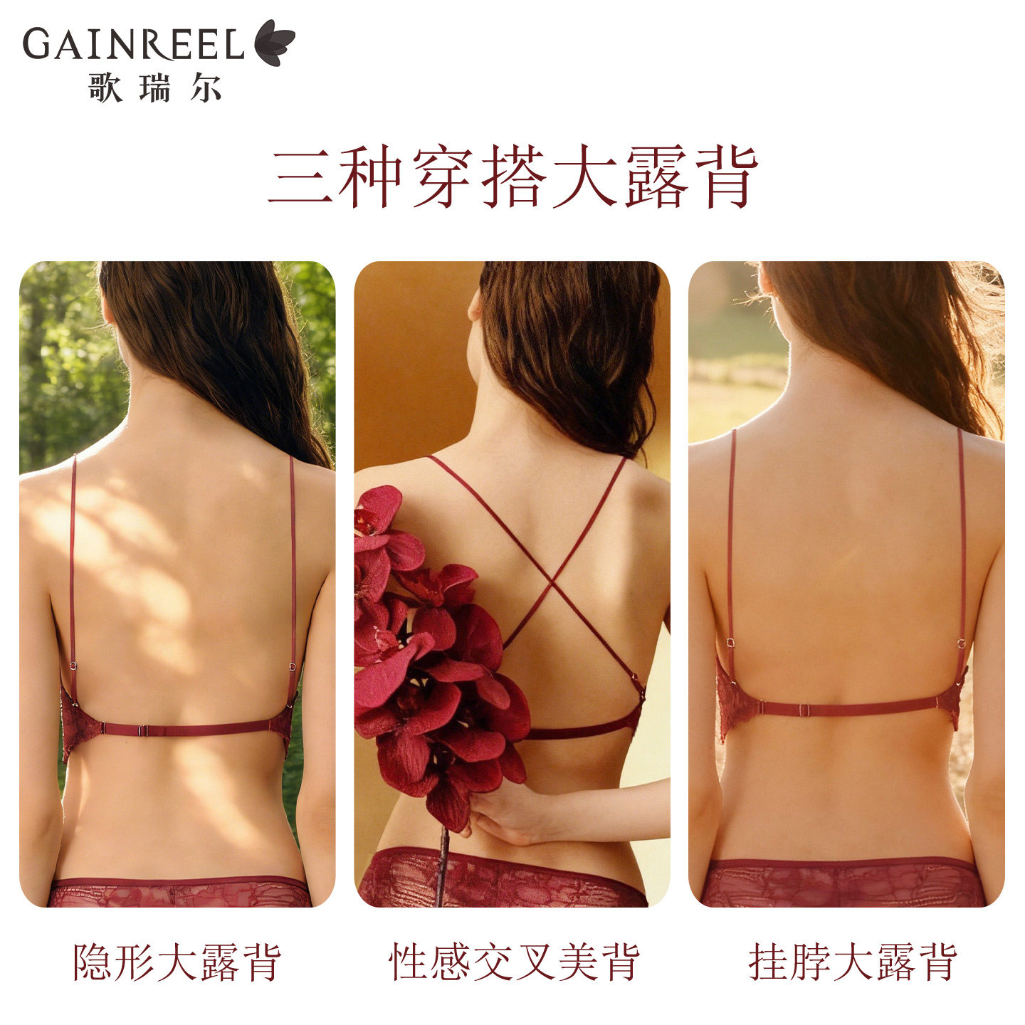 歌瑞尔红色内衣结婚新娘薄款蕾丝美背一体式外露细肩带背心式文胸