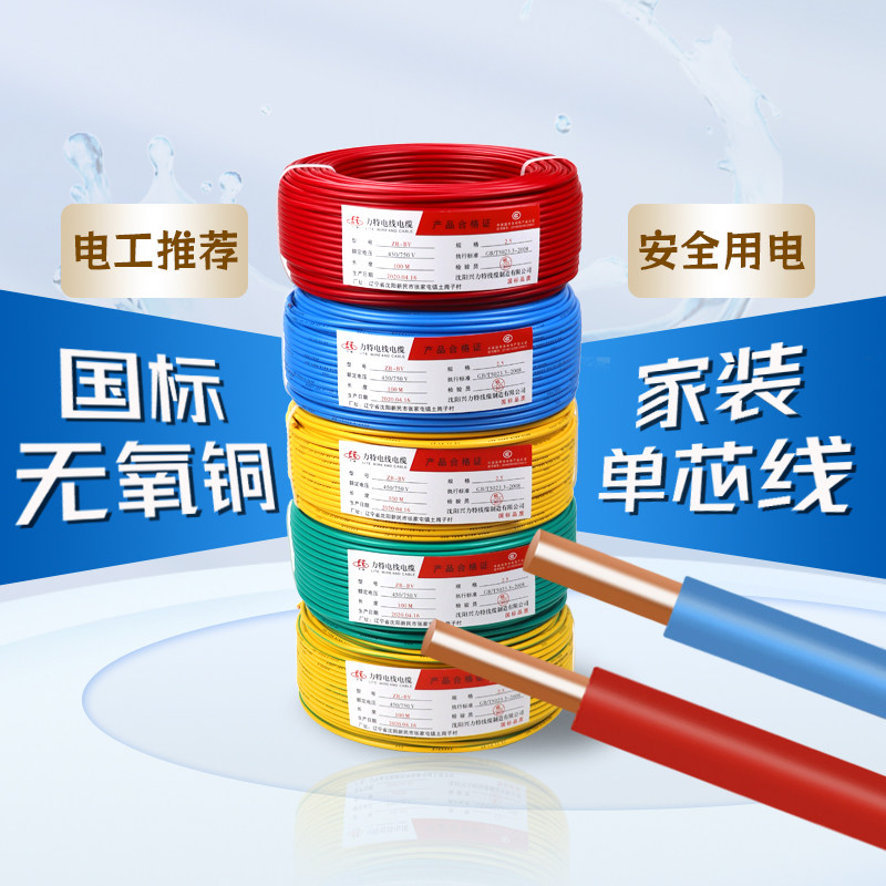 电线BV铜芯国标1.5/2.5/4/6/10/16平方纯铜线单股阻燃硬线家装用