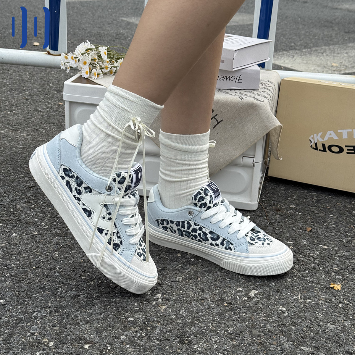 顽刻官方冰蓝配色豹纹设计冬季校园风W系列低帮男女国潮滑板鞋