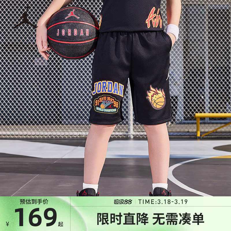 JORDAN儿童装男童篮球裤运动裤透气短裤中大童五分裤JD2322085GS