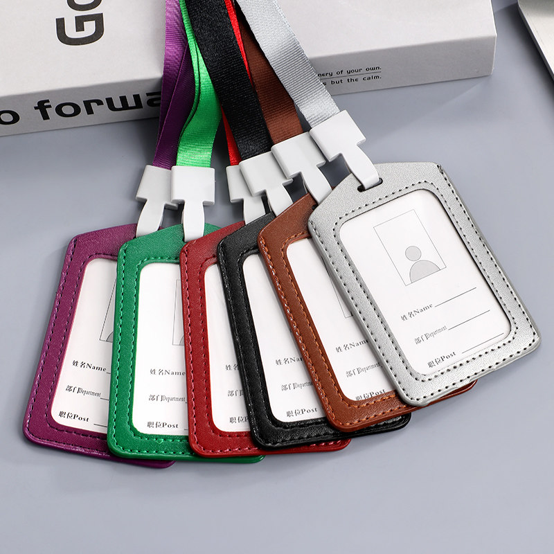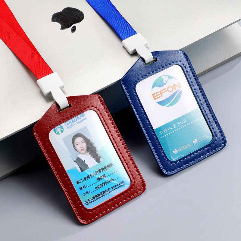 PU皮卡套证件套工作证带挂绳保安门卫工作牌工牌胸牌工作吊牌胸卡挂牌厂牌挂脖工号牌保护套员工学生公交卡套