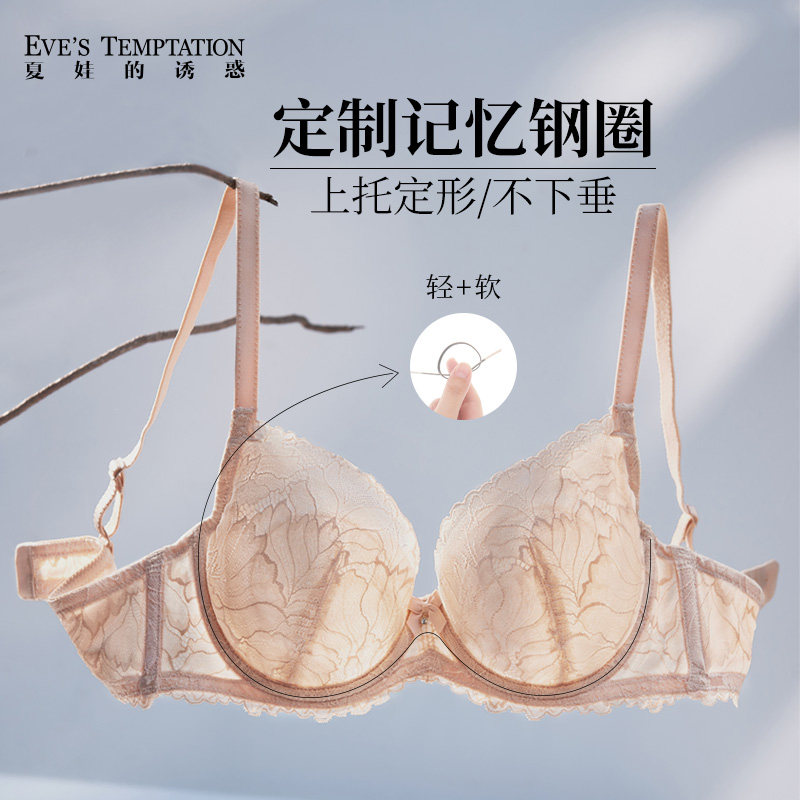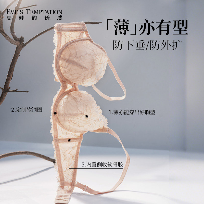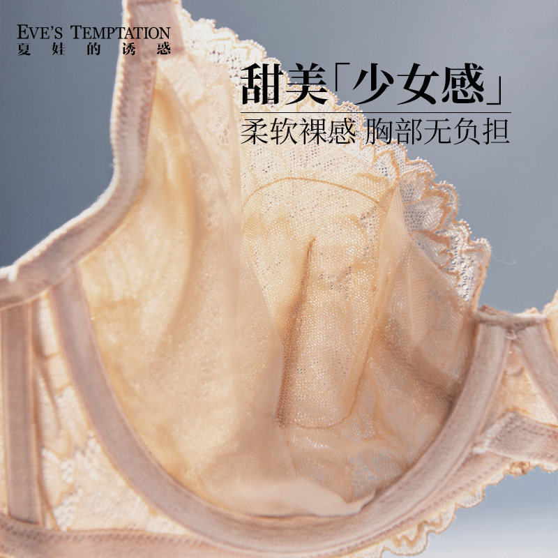 夏娃的诱惑内衣女性感蕾丝夏薄款软支撑防下垂大胸显小大码文胸罩