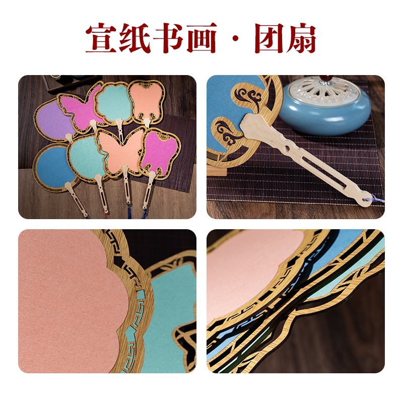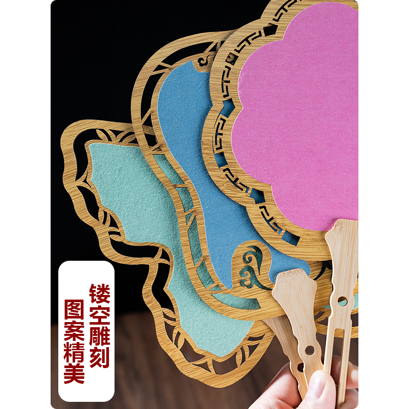 【可定制】 四品堂彩色镂空团扇古风扇子diy空白木质镂空宣纸团扇国画书法扇子