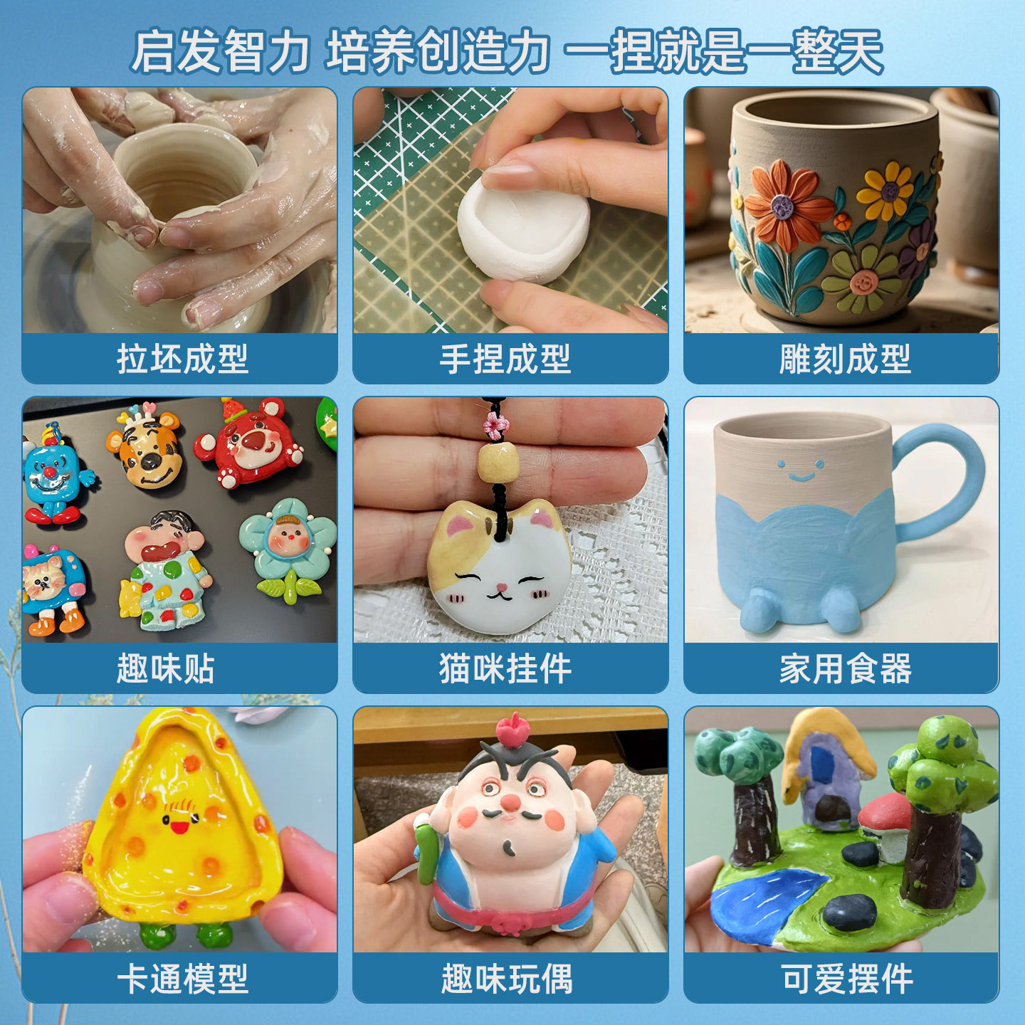 马利陶泥小学生专用套装儿童泥塑粘土幼儿园免烧烤陶艺土手工制作diy