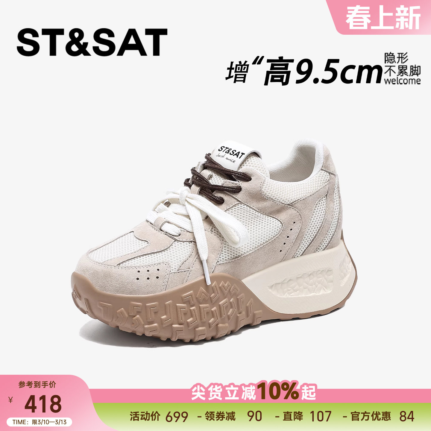 星期六内增高德训女鞋新款9.5CM小个子增高老爹不累脚厚底阿甘鞋