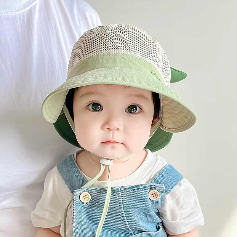 宝宝帽子夏季网眼渔夫帽男童女婴儿大檐披肩防晒遮阳帽太阳帽薄款