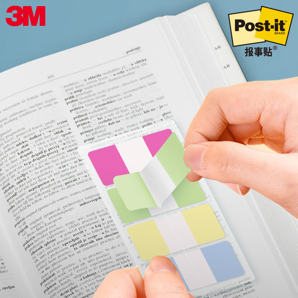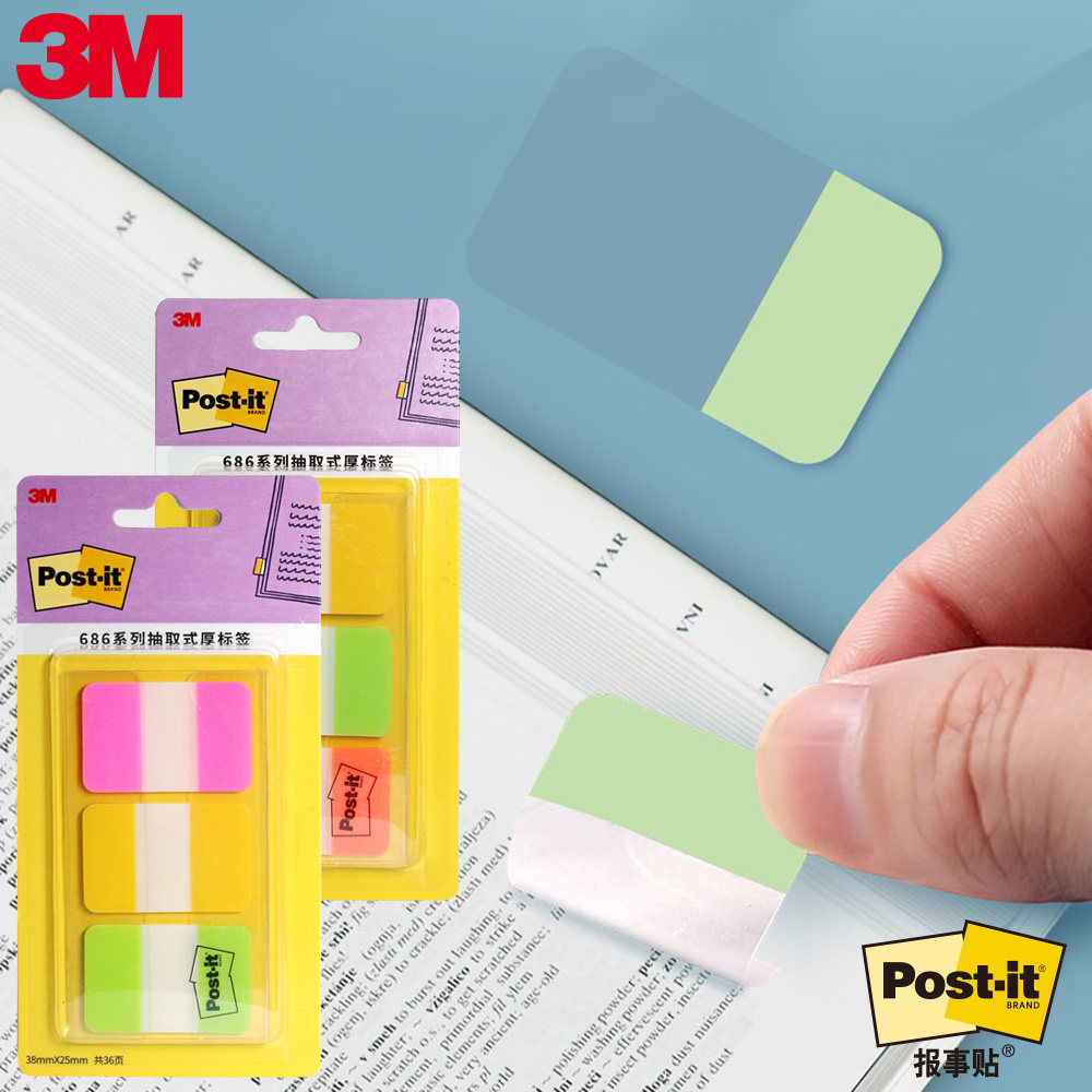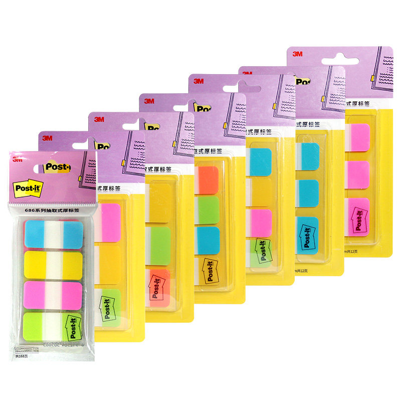3M索引贴抽取式厚标签686系列报事贴厚塑料材质可重复粘贴书写性佳着墨性强分类耐用归档便签5色7款便利贴