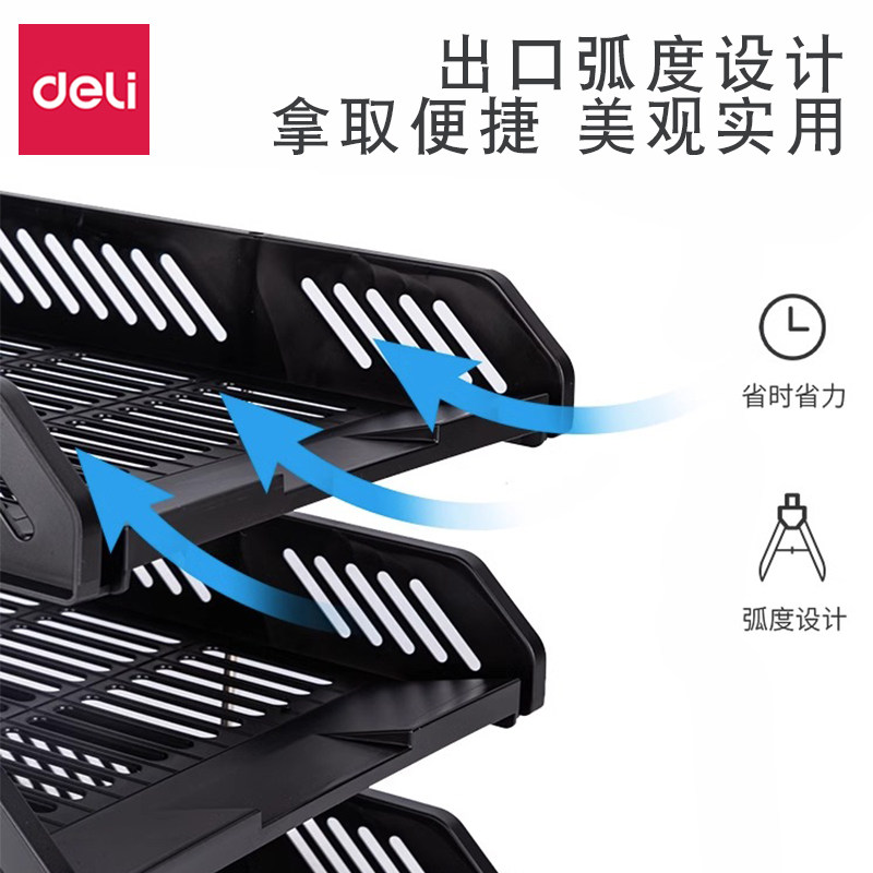 得力文件框文件收纳架加厚文件放置架黑色简易立式书立文件架书架桌面办公文件收纳架文件盒桌上资料架
