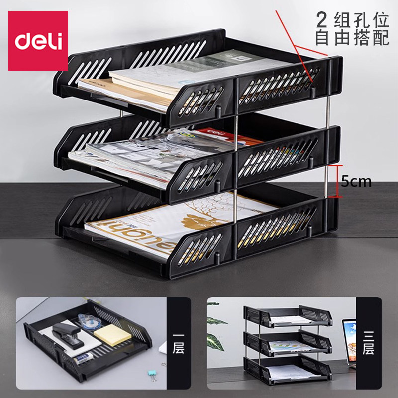 得力办公桌文件收纳架置物架夹学生书桌桌面书架收纳神器档案资料分层收纳盒书立办公室材料整理好物a4收纳框
