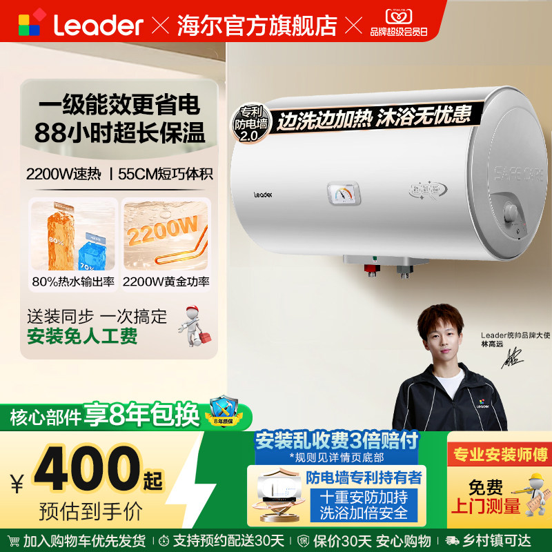 海尔出品统帅电热水器家用小型一级能效60升速热节能租房洗澡X5