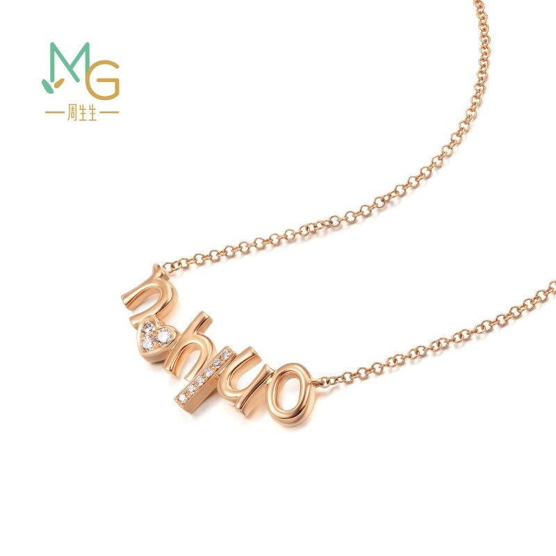 潮宏基悦己独爱红18K项链玫瑰彩金锁骨链项链女送女友纪念礼物