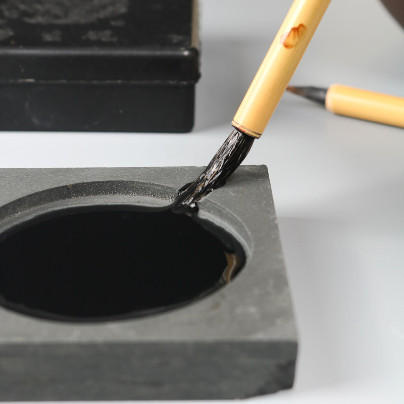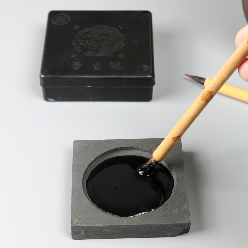 光祖原石头砚台学生砚池墨盒带盖文房四宝龙砚初学者学生歙砚抄经小中大楷书法书画墨碟歙砚墨条宣纸笔墨纸砚