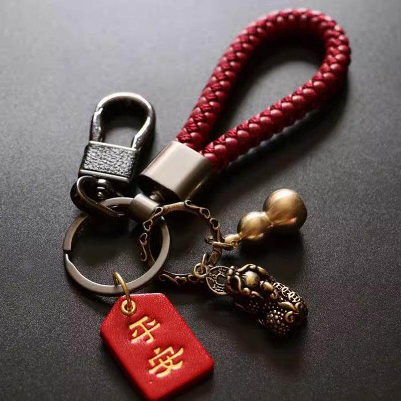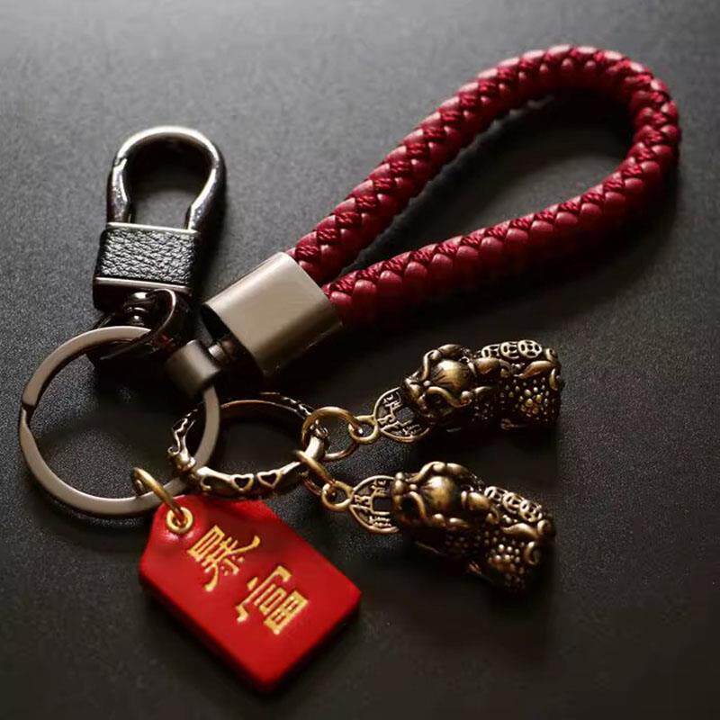 黄铜貔貅汽车钥匙扣钥匙挂件手工编织绳男女钥匙链圈环创意个性$1