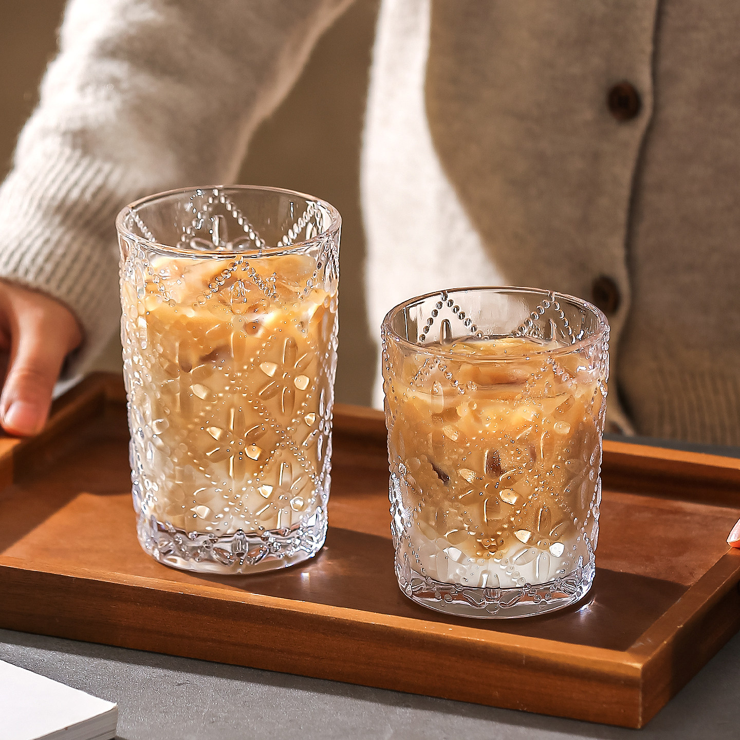 小众复古矮脚收腰玻璃杯ins风美式咖啡杯特调饮品杯冷饮杯果汁杯
