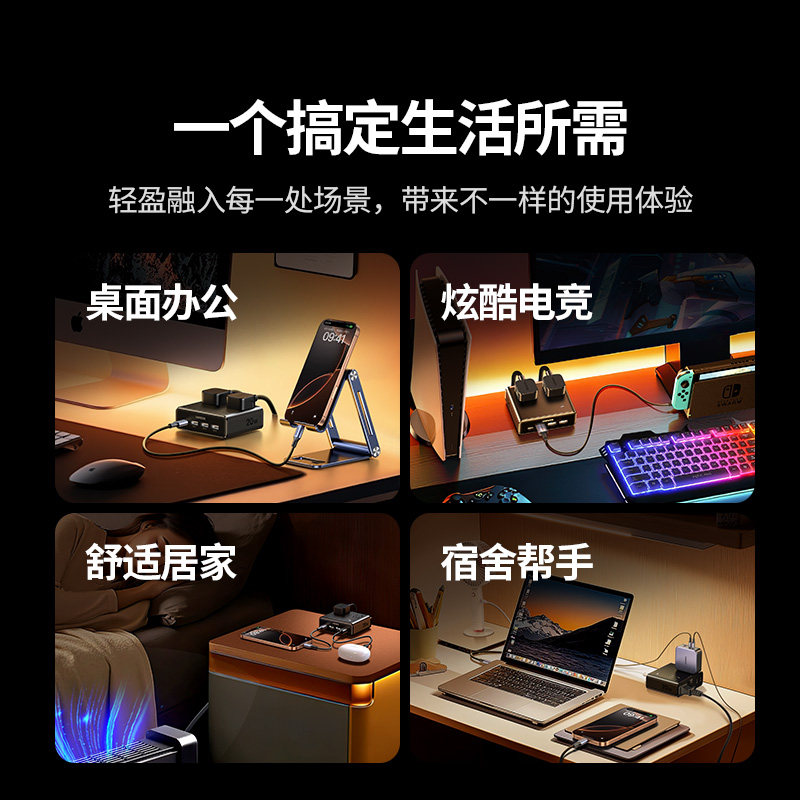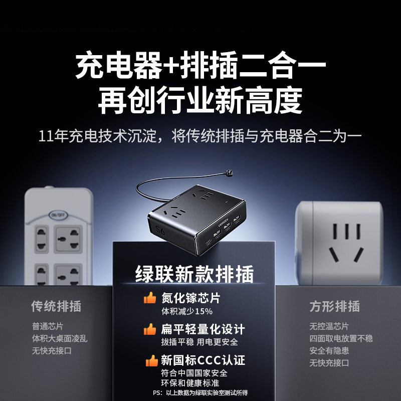 绿联S6魔方插座插排拖插线板带usb口多功能插板桌面充电站器排插