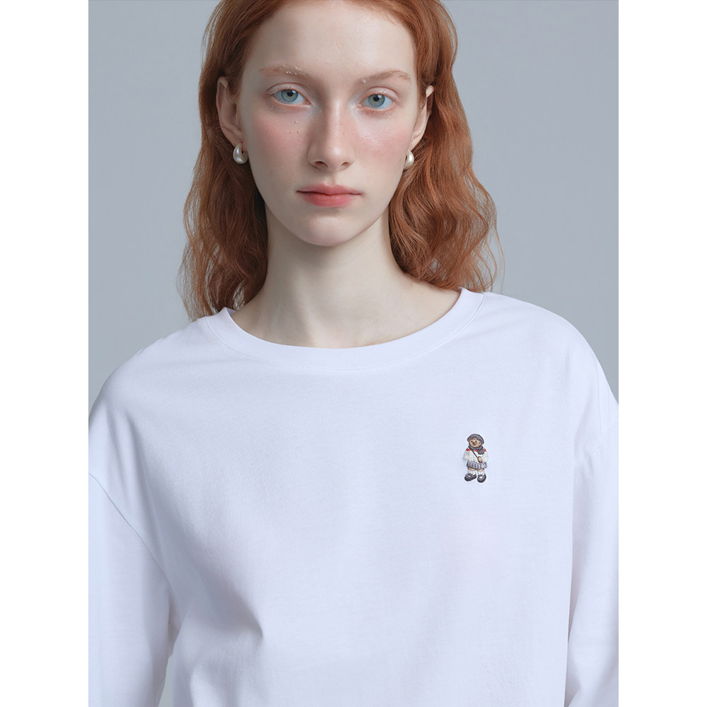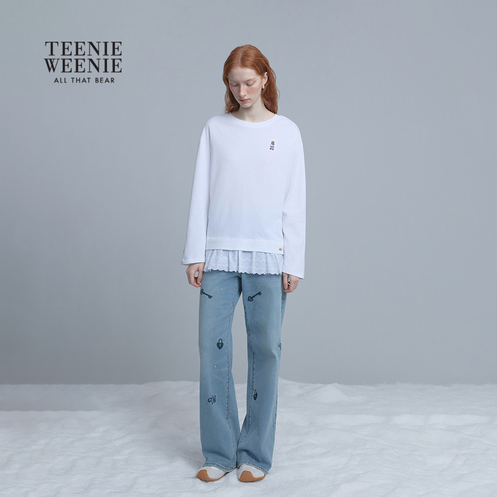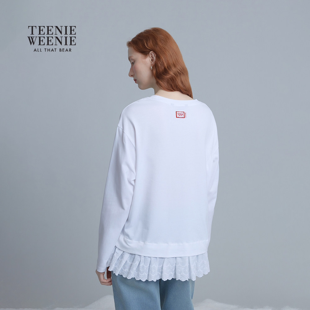 TeenieWeenie小熊女长袖T恤秋冬休闲宽松舒适底端蕾丝打底衫上衣