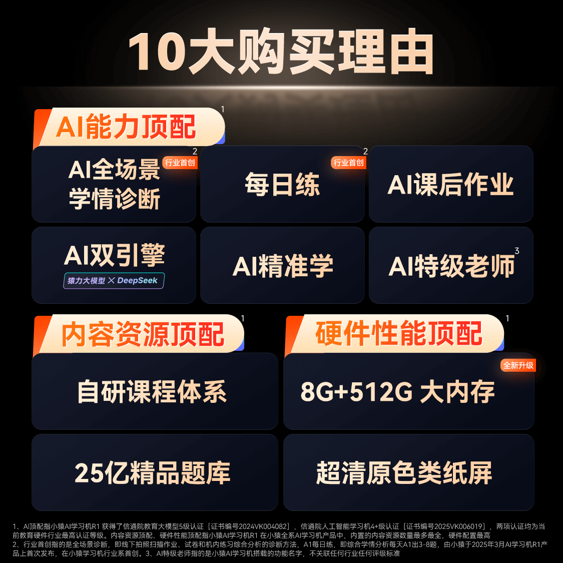 【全网保价 国补500】小猿AI学习机R1猿辅导2026焕新AI伴学家教机全场景AI诊学练小初高通用平板大屏护眼