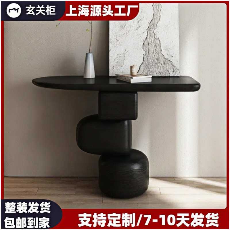 侘寂风烤漆玄关柜实木玄关台现代简约客厅装饰柜艺术展台案台包邮