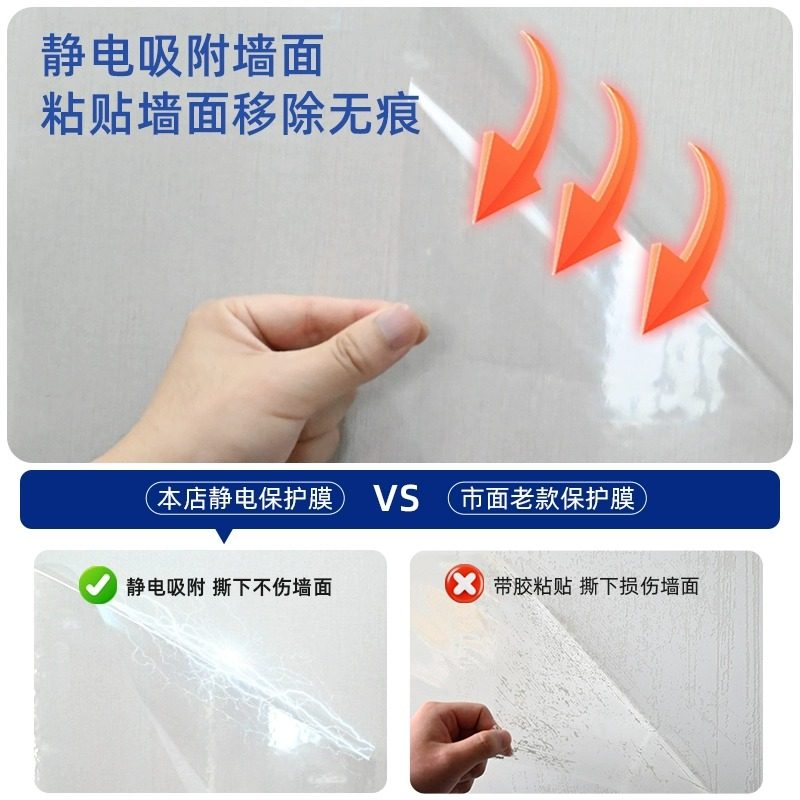 乳胶漆墙面静电保护膜不伤墙透明静电贴吸附墙壁贴纸防水防油客厅
