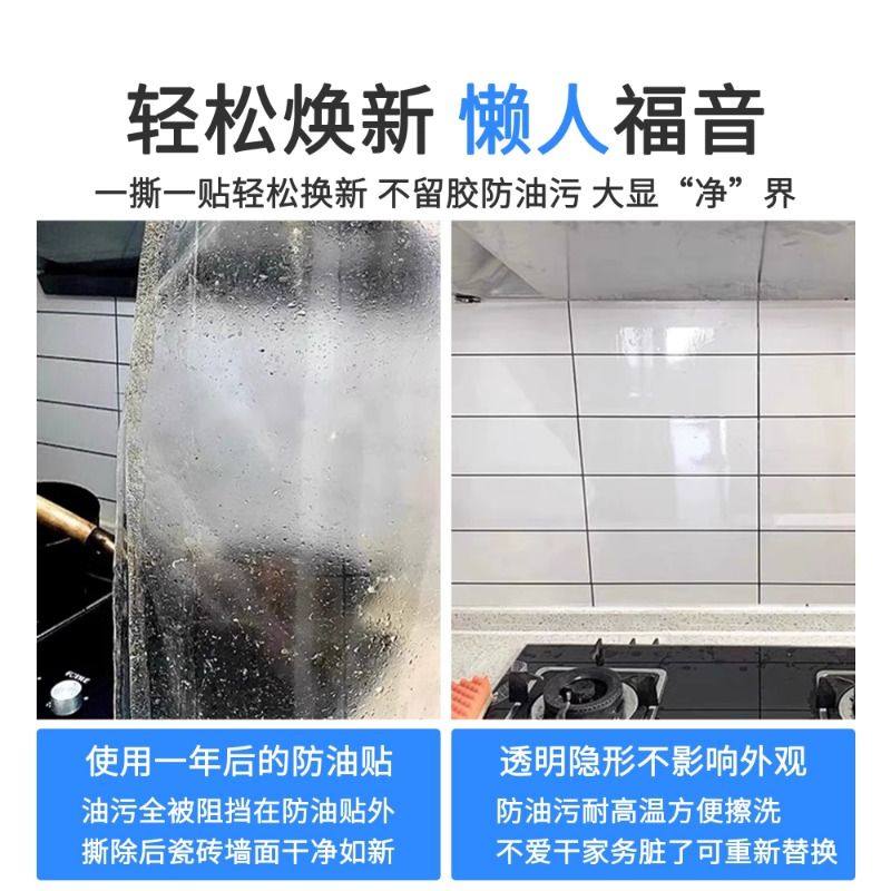 厨房防油贴纸灶台墙纸自粘加厚耐高温防水防污静电透明玻璃贴膜