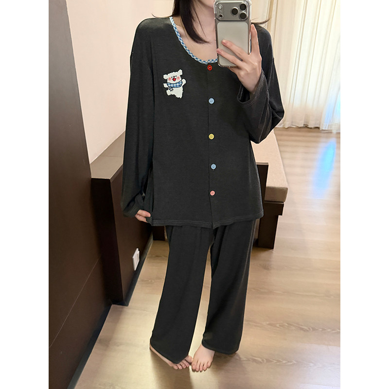 ins风卡通睡衣女款春秋季莫代尔长袖2026新款休闲冰丝大码家居服