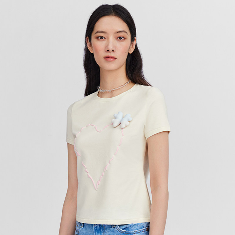 凉感T森马短袖T恤女短款修身正肩收腰2025夏新款上衣百搭白色体恤